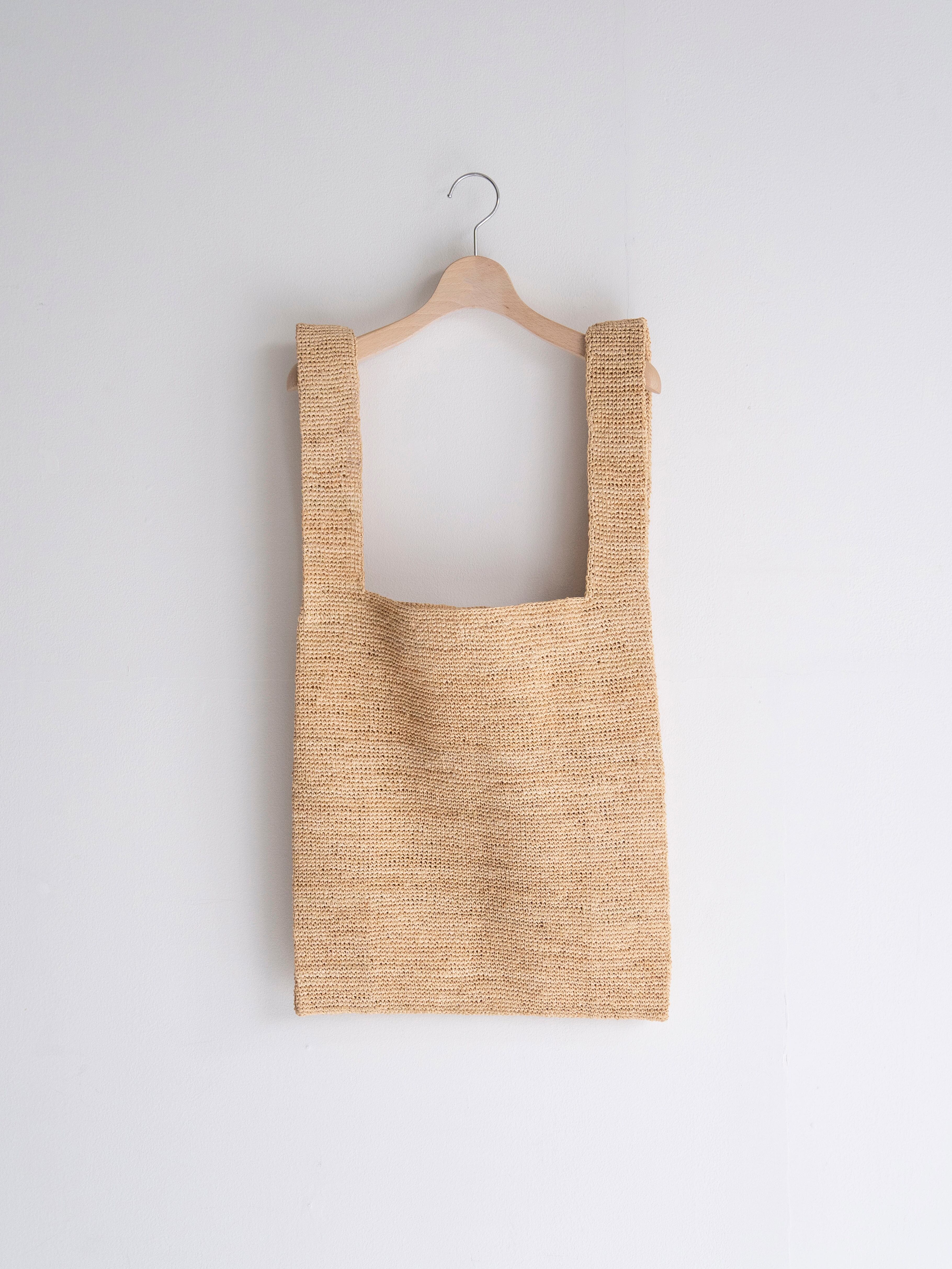 ラフィア(ヤシの葉)素材のショッピングバッグ。