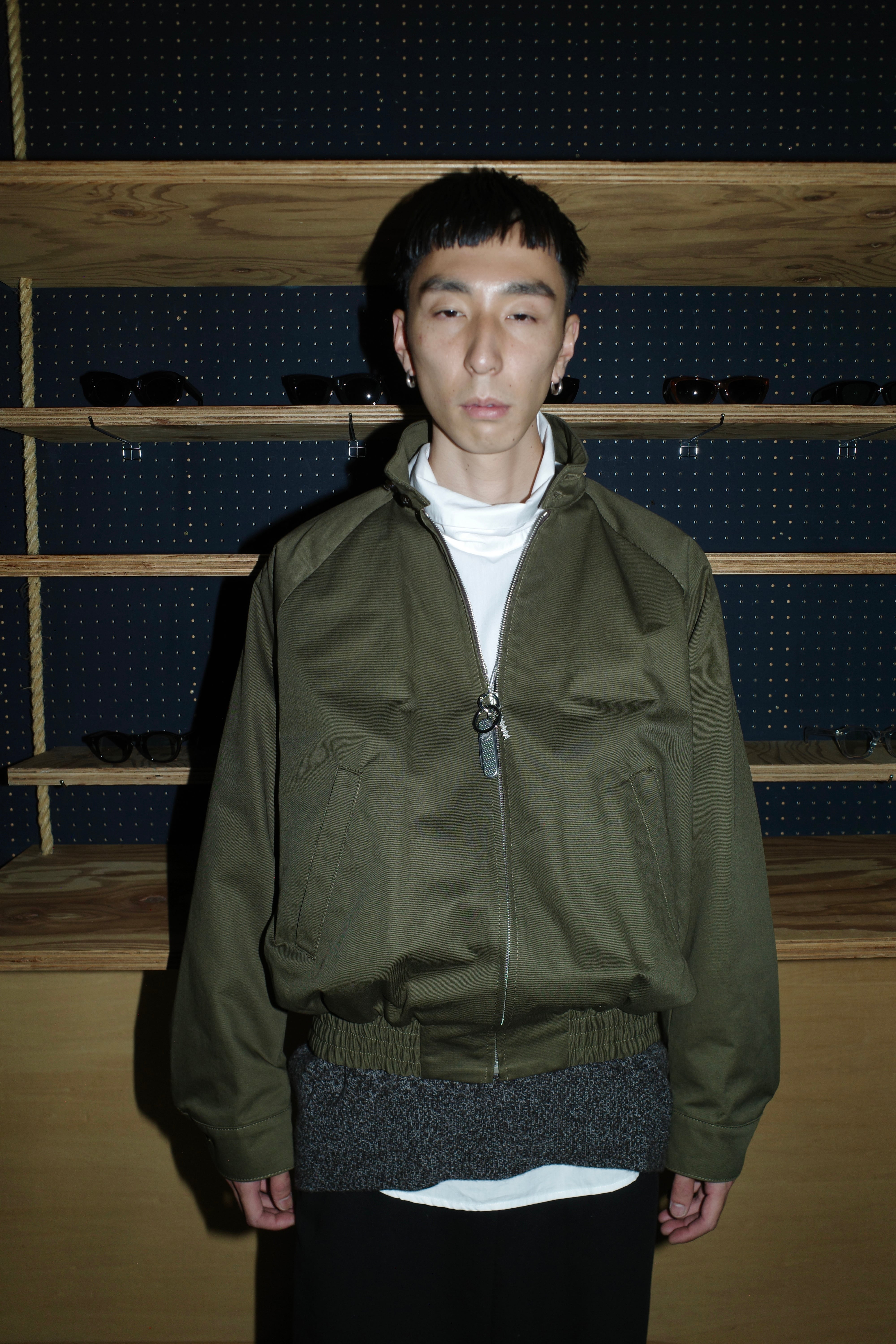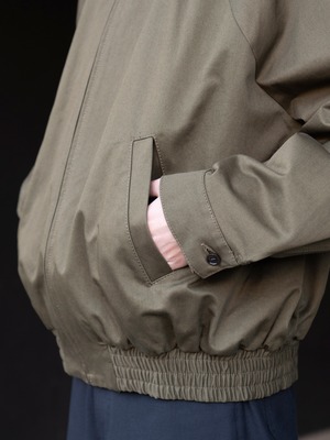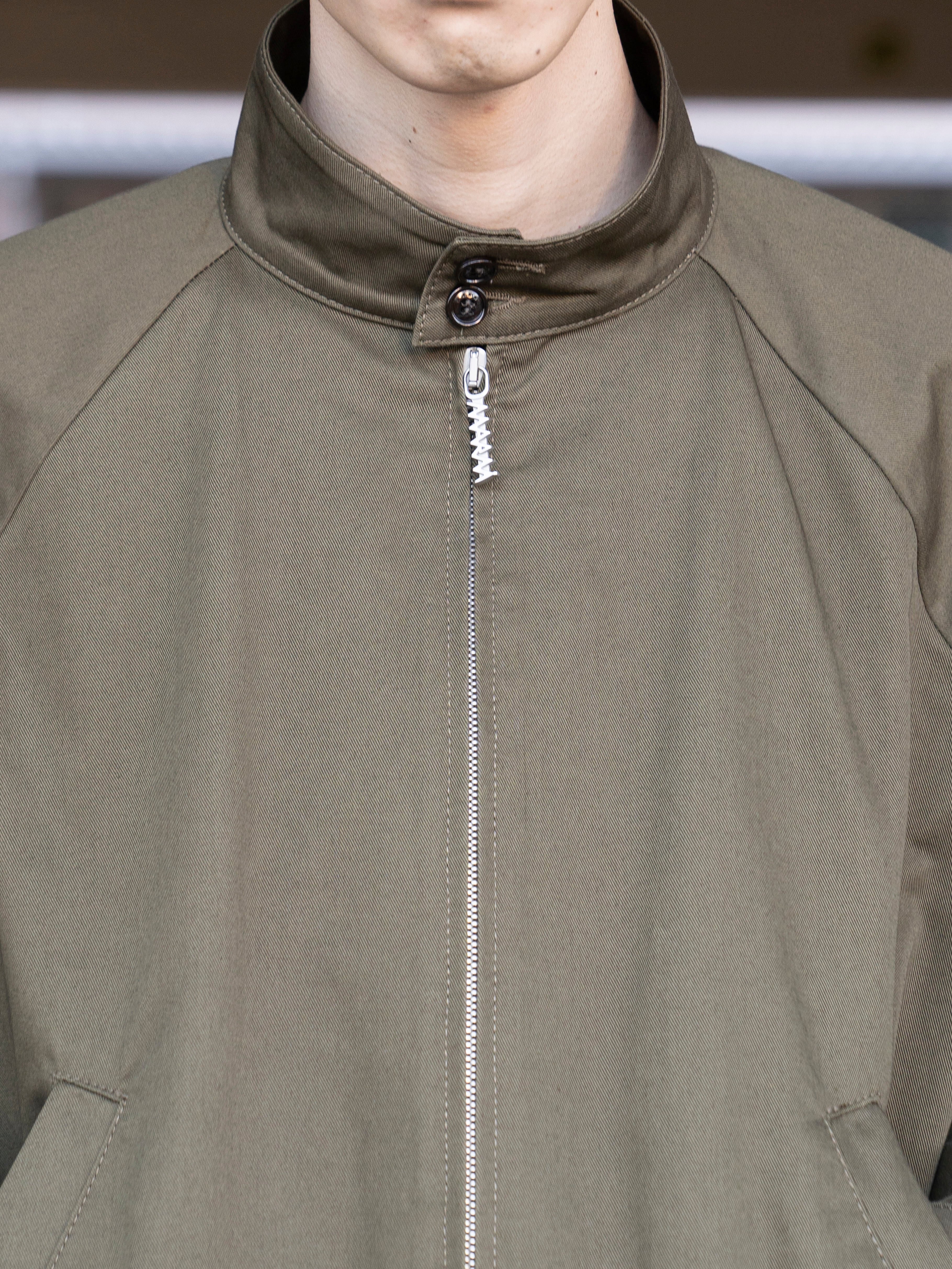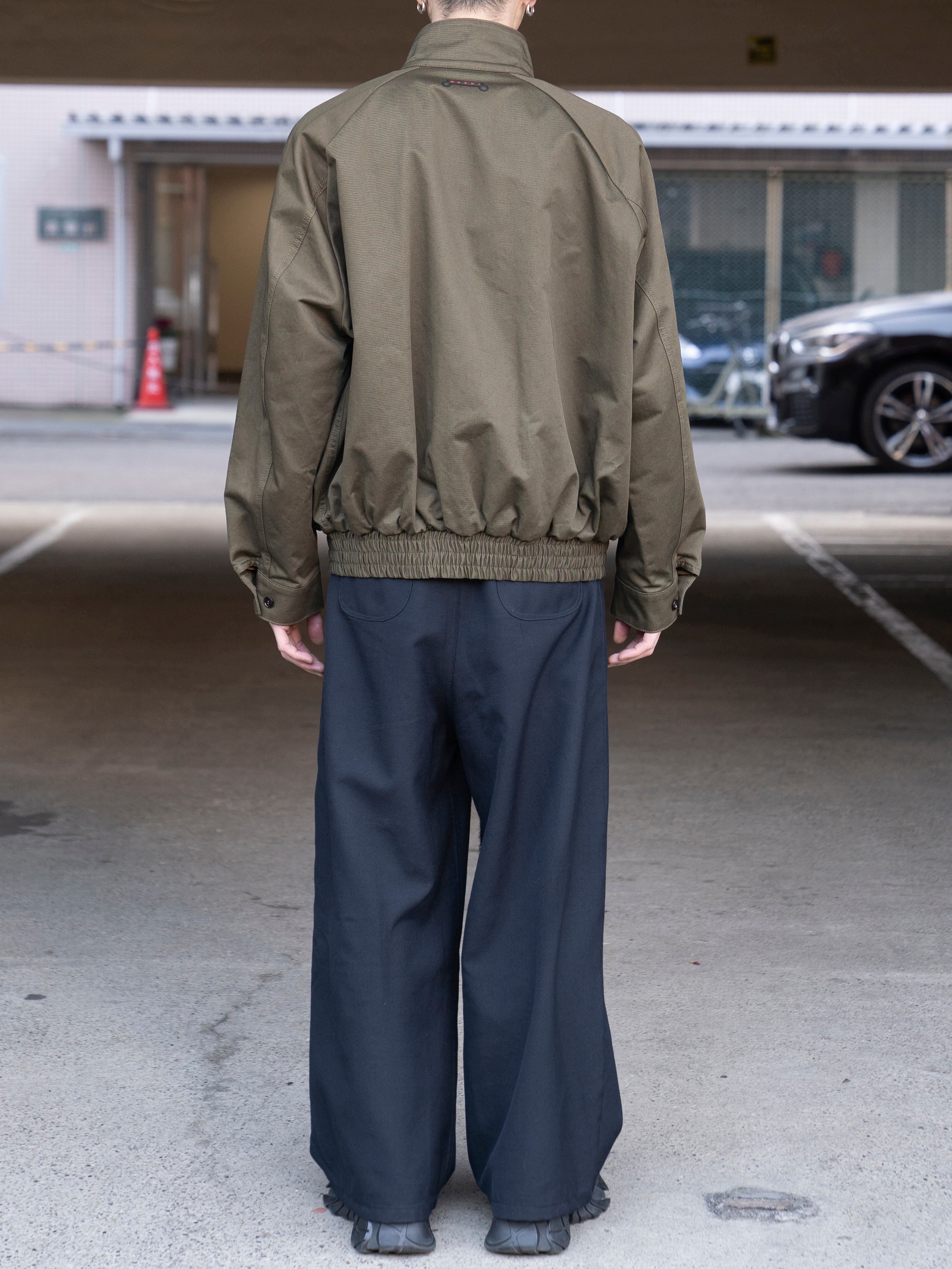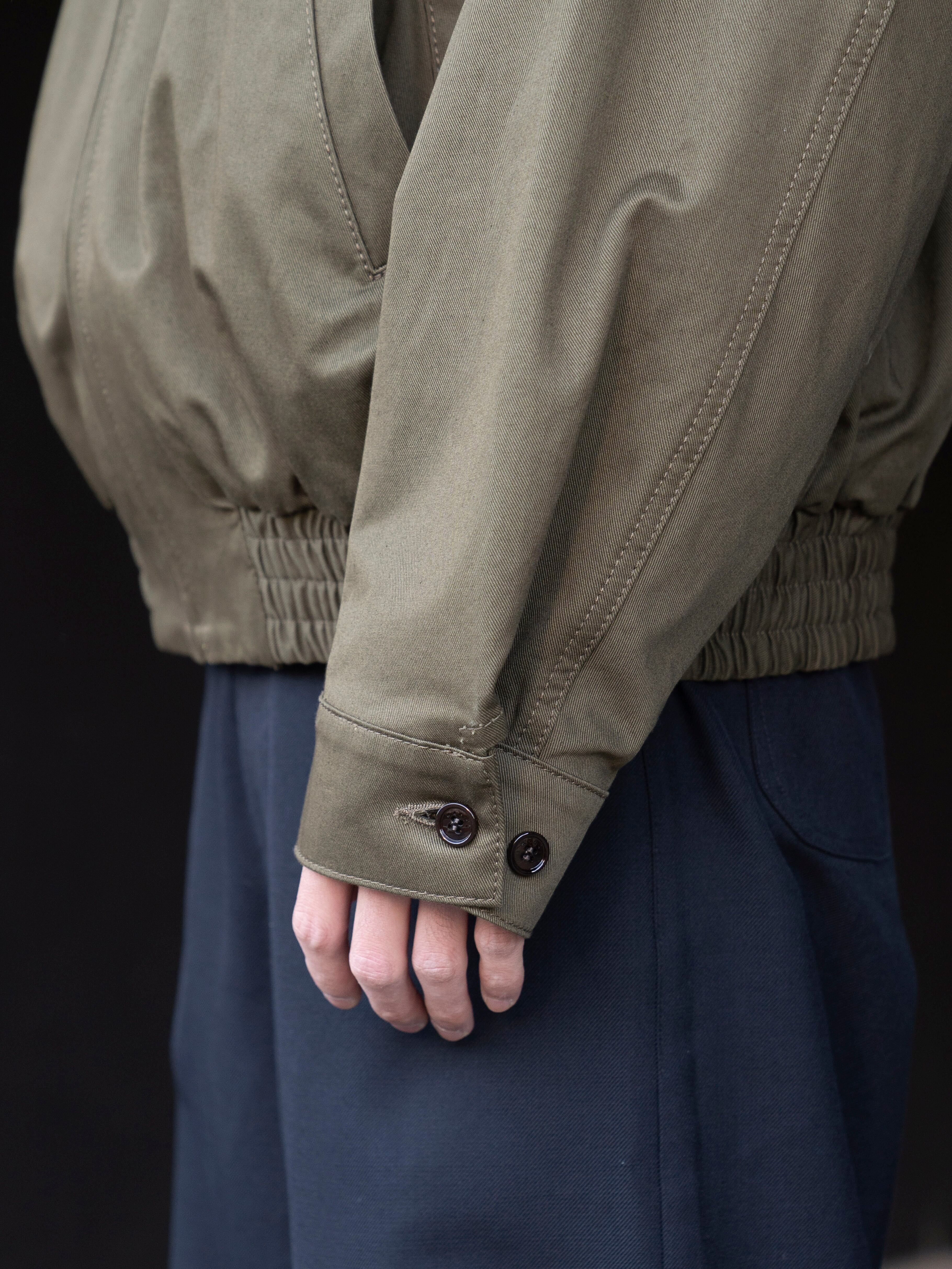 オーガニックコットンのギャバジンを使用したボンバージャケット。 ラグランスリーブ、伸縮性のある裾を備えたリラックスフィット。 ボタン付きハイネック、ファスナー開閉。 バックに Trunkaroo マルニロゴ。