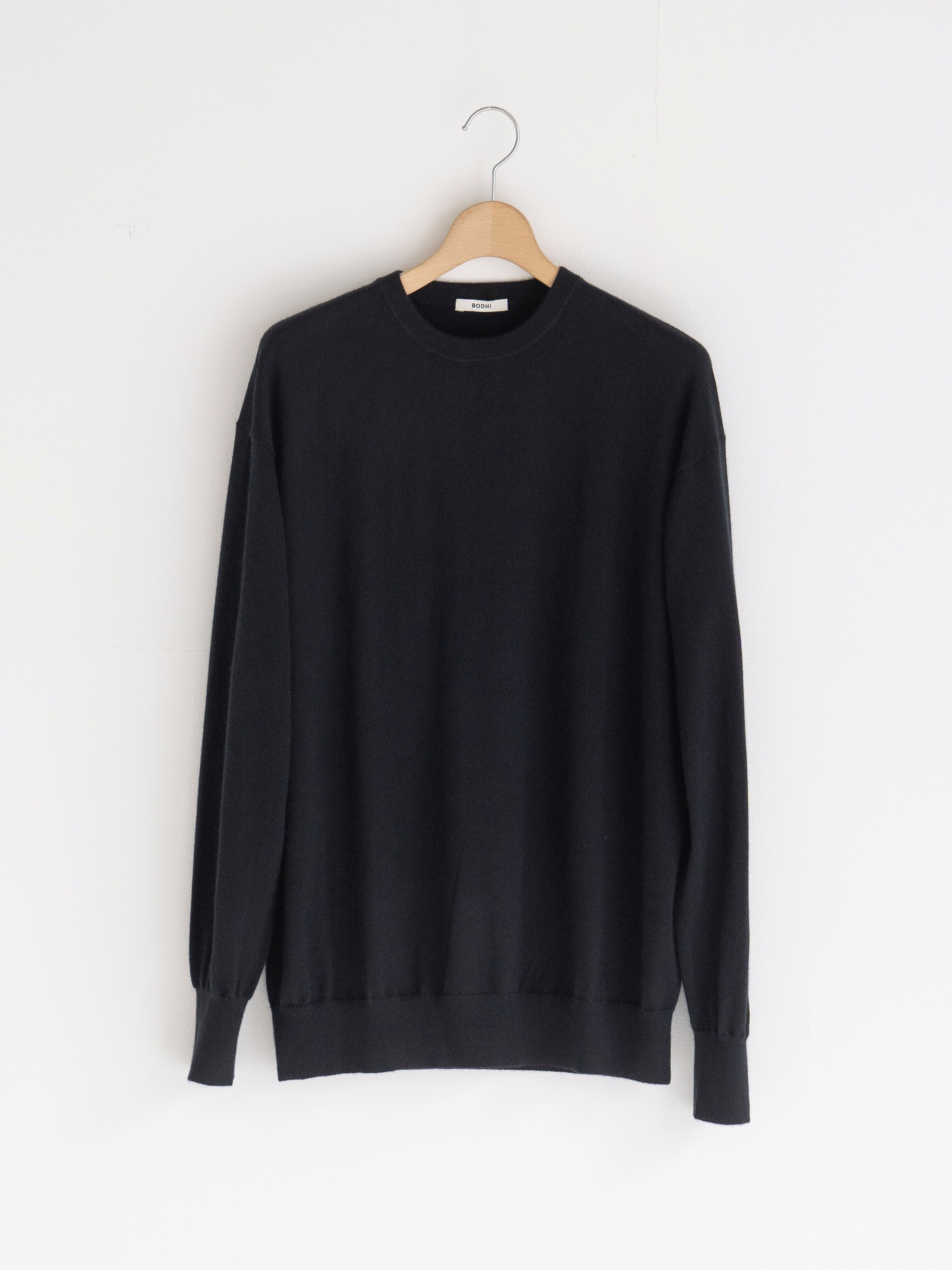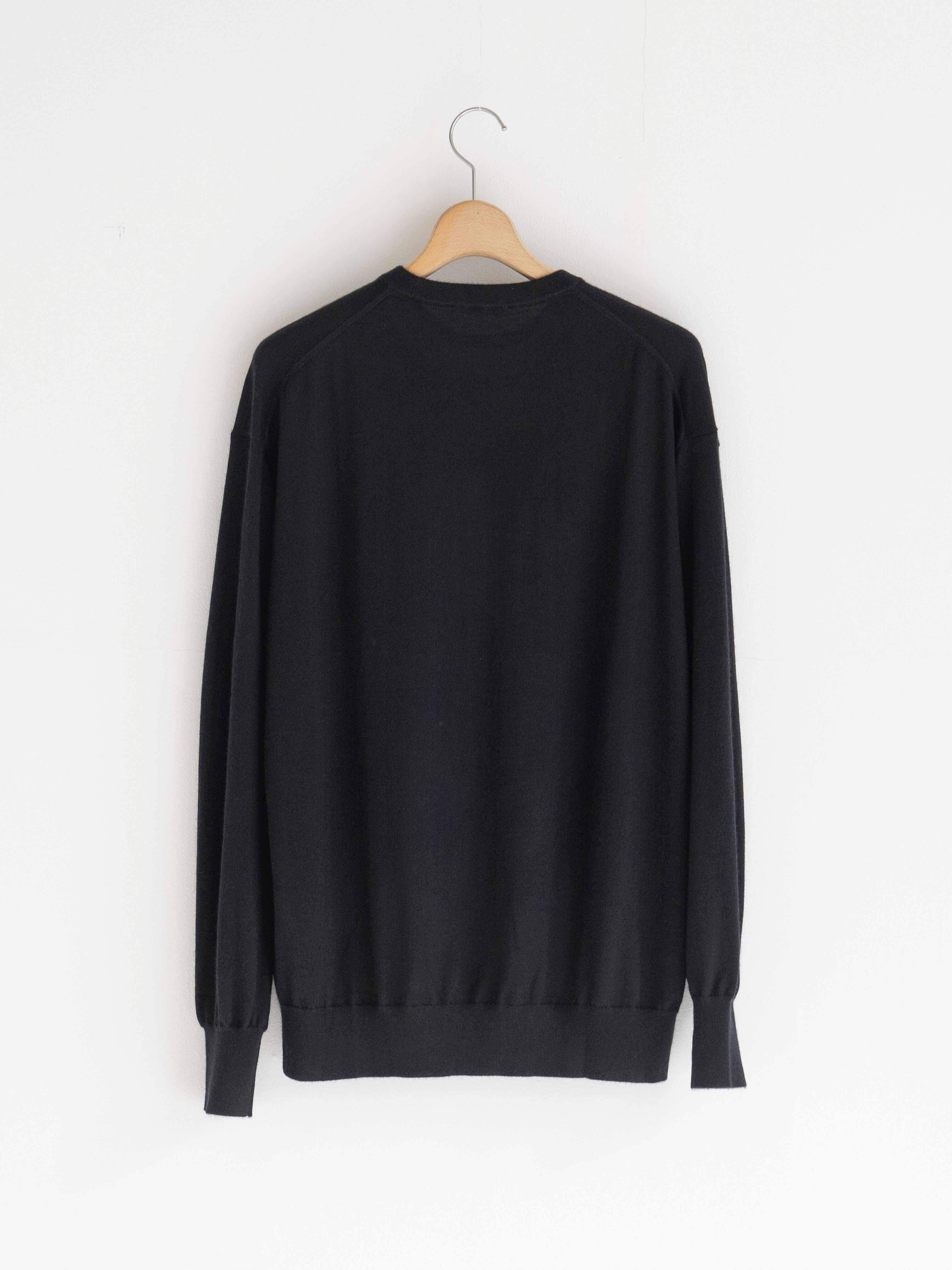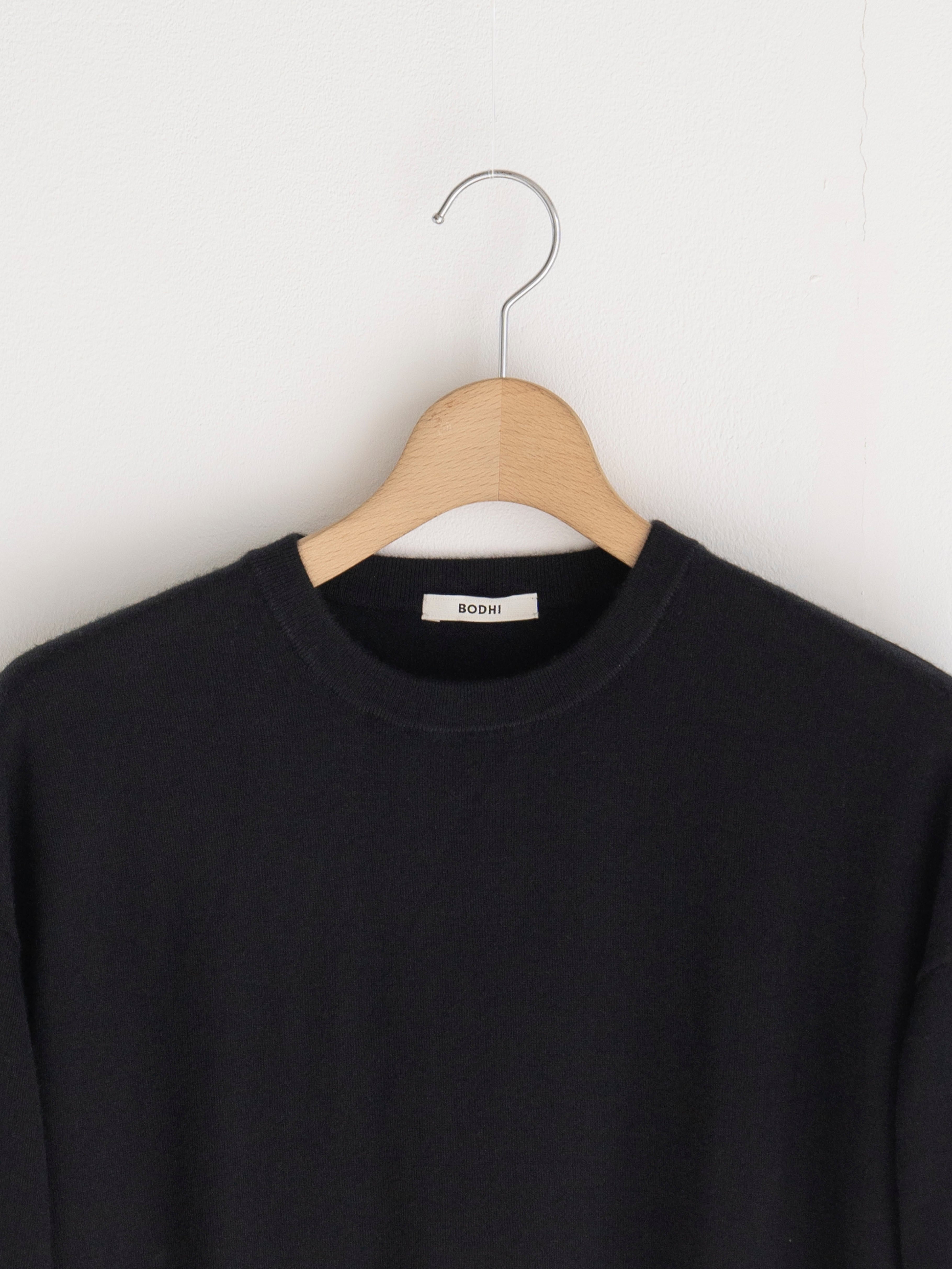 オールシーズン着用可能なカシミヤのハイゲージ天竺ニットソー。極細毛のカシミヤを通常よりもさらに強然することで保温する空気のポケットをカットし、サラッとした肌触りと着ていないような軽さを実現。ボディにフィットしやすい組織のため、リラックス出来るシルエットにデザインしています。