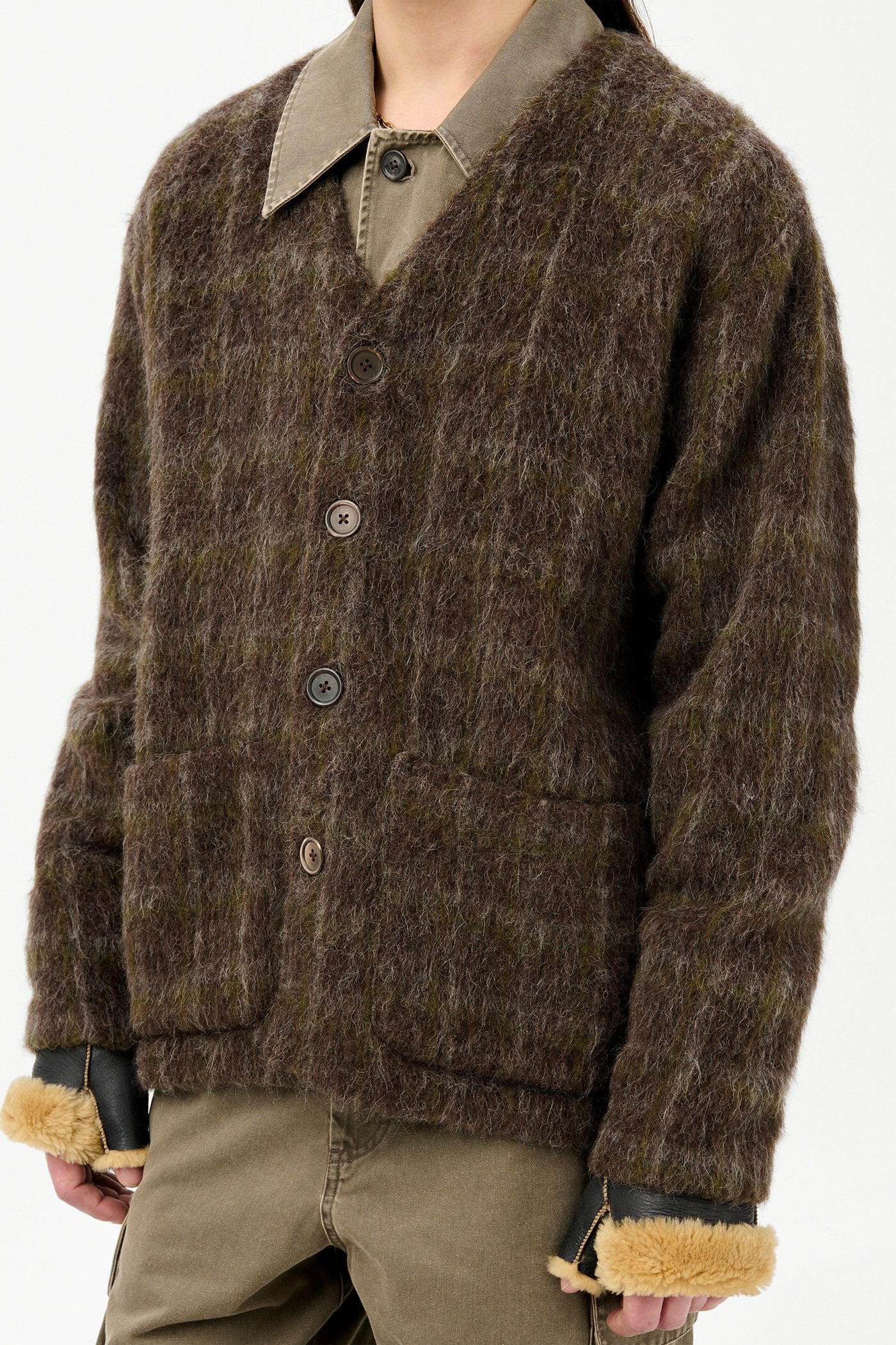 OUR LEGACY CARDIGAN Dorf Check Hairy Wool M4256CD