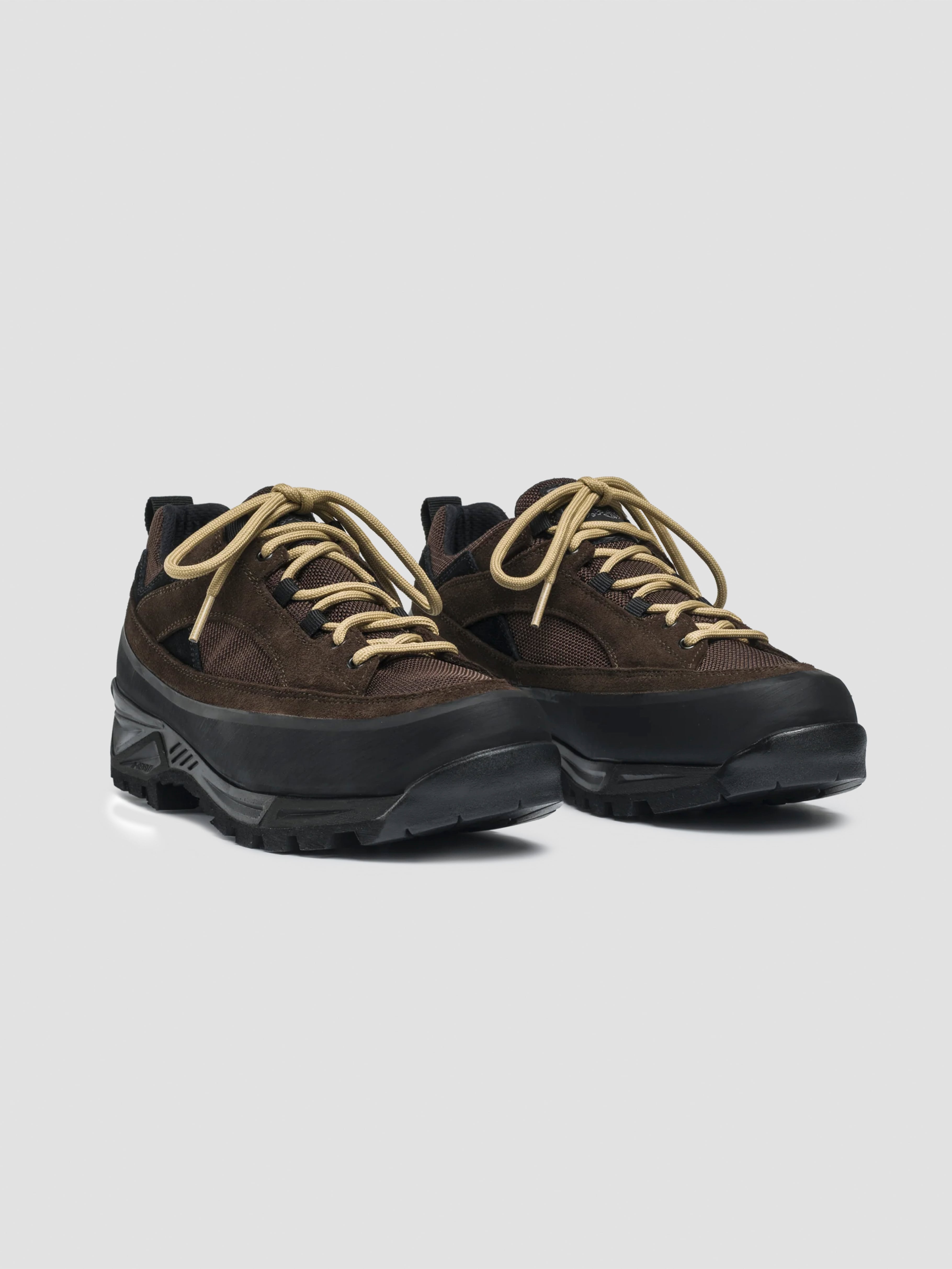 プレミアムスエードと耐久性のあるコーデュラ素材で作られ、耐水性を備えたSympatexライニングと、安定性とグリップ力を提供するVibram New Winklerソールを採用しています。