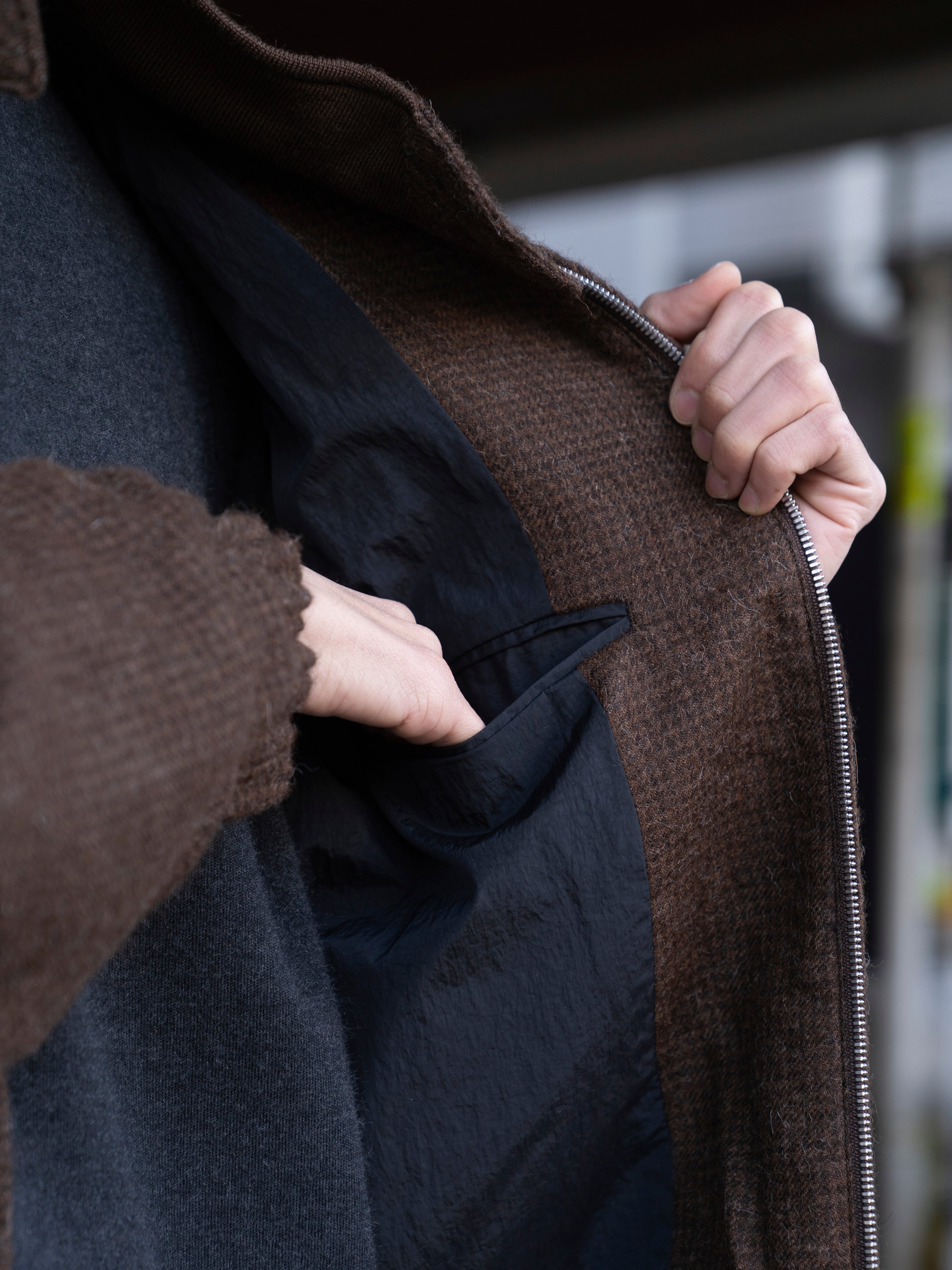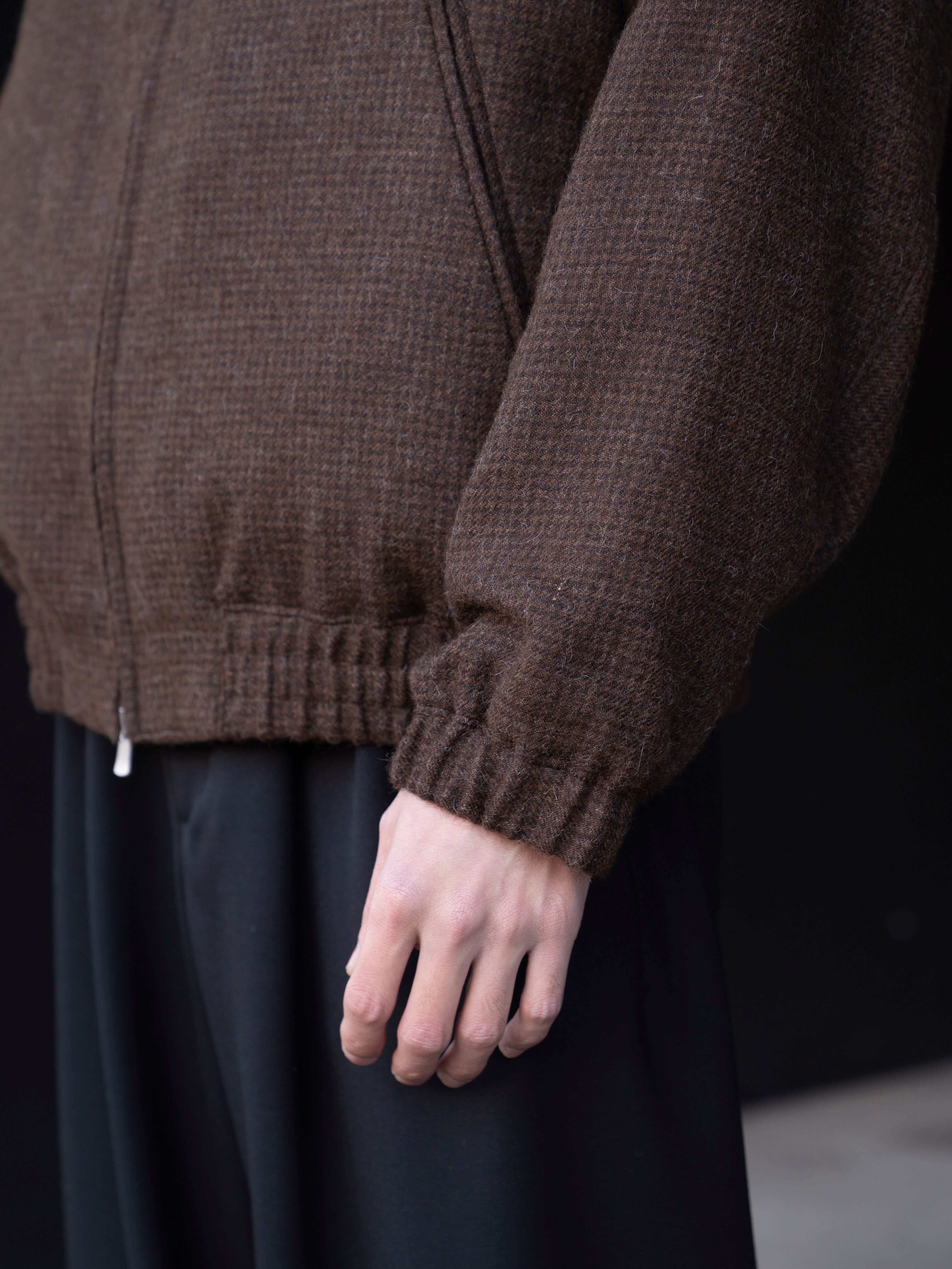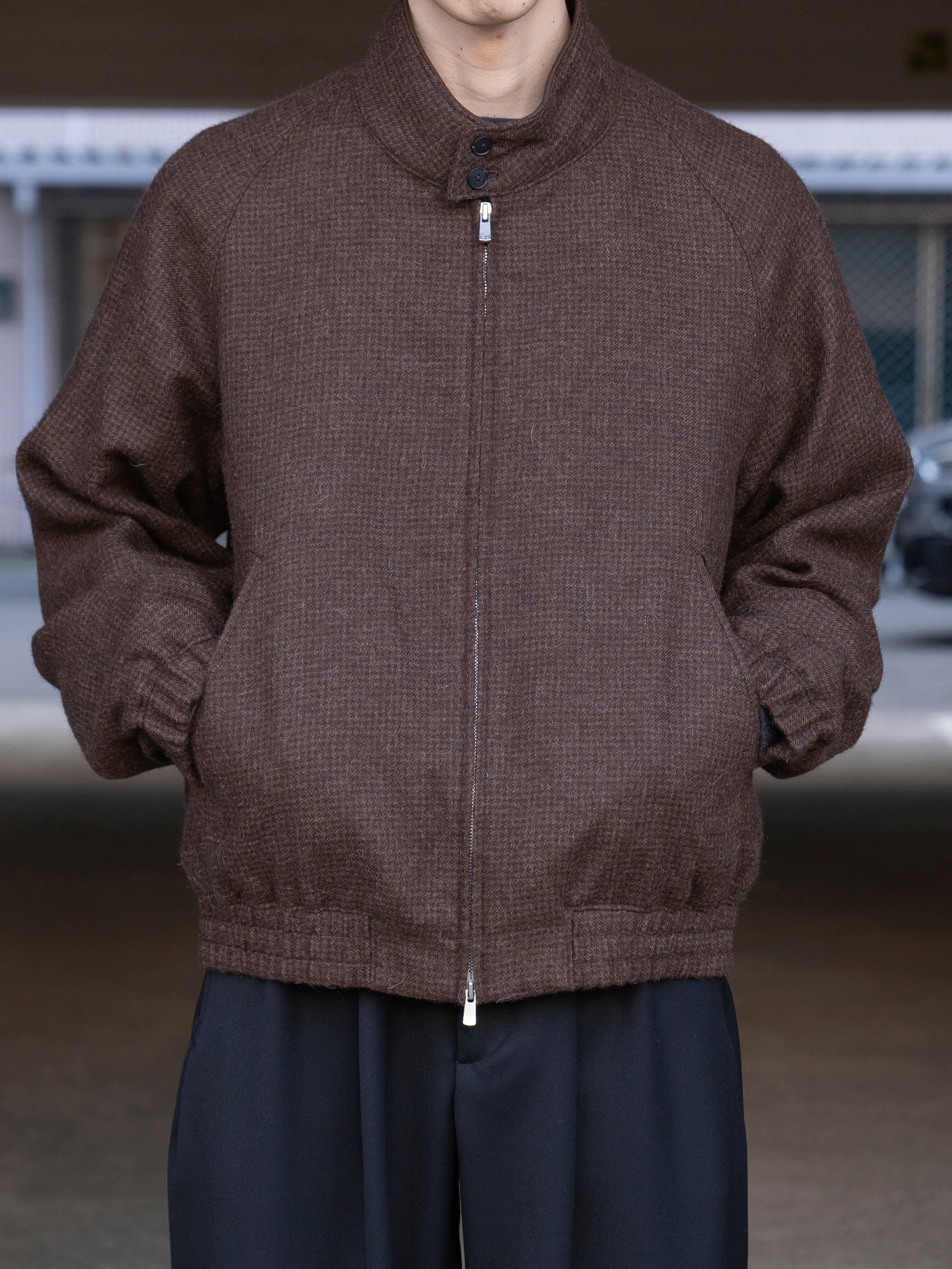 ATON ALPACA HOUND TOOTH HARRINGTON JACKET BROWN JKAGGW0904