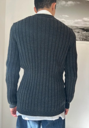 ヴィンテージのニットをイメージして作られており、経年や洗いをかけることでサイズ感が小さく見えるように仕上げています。
