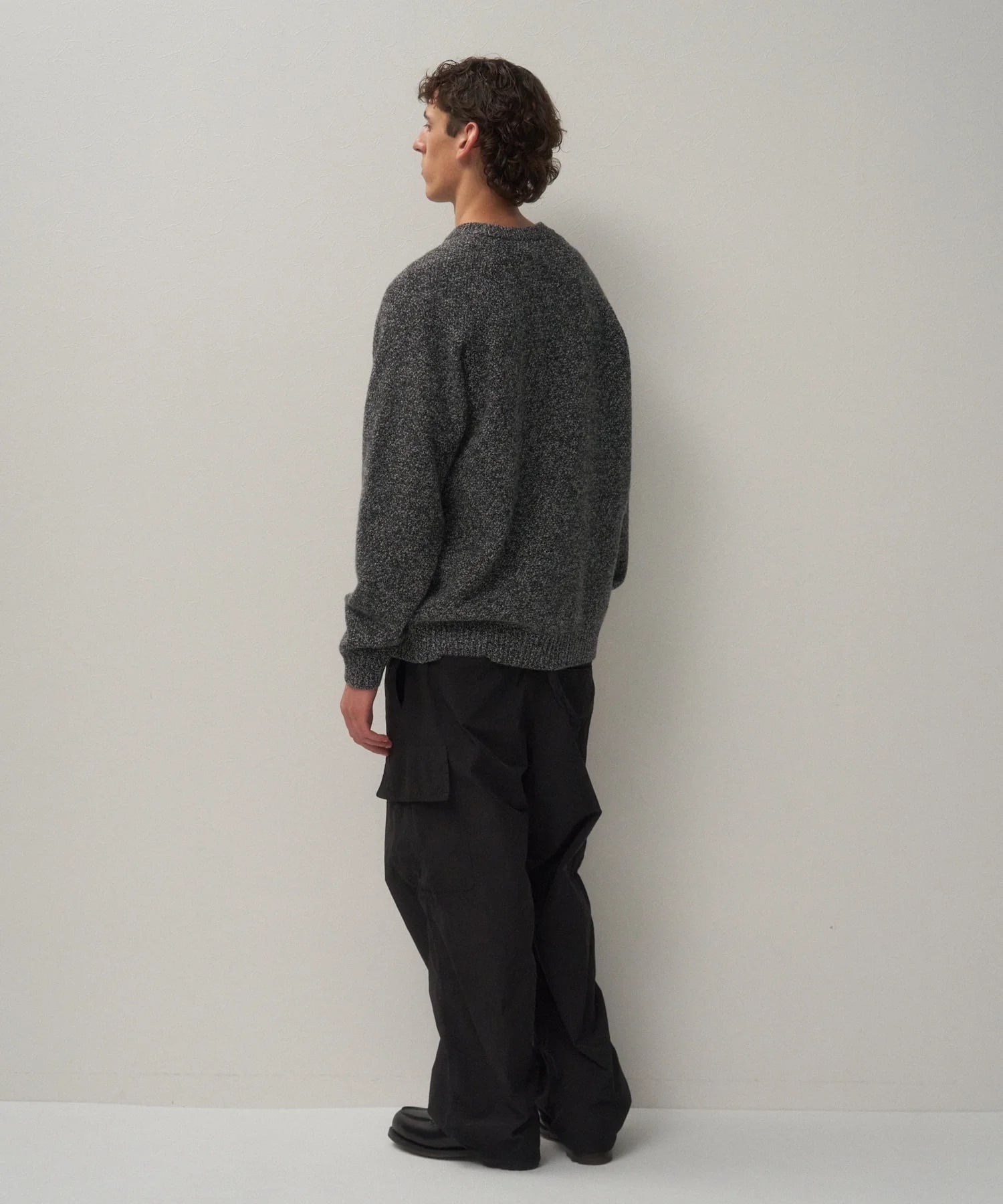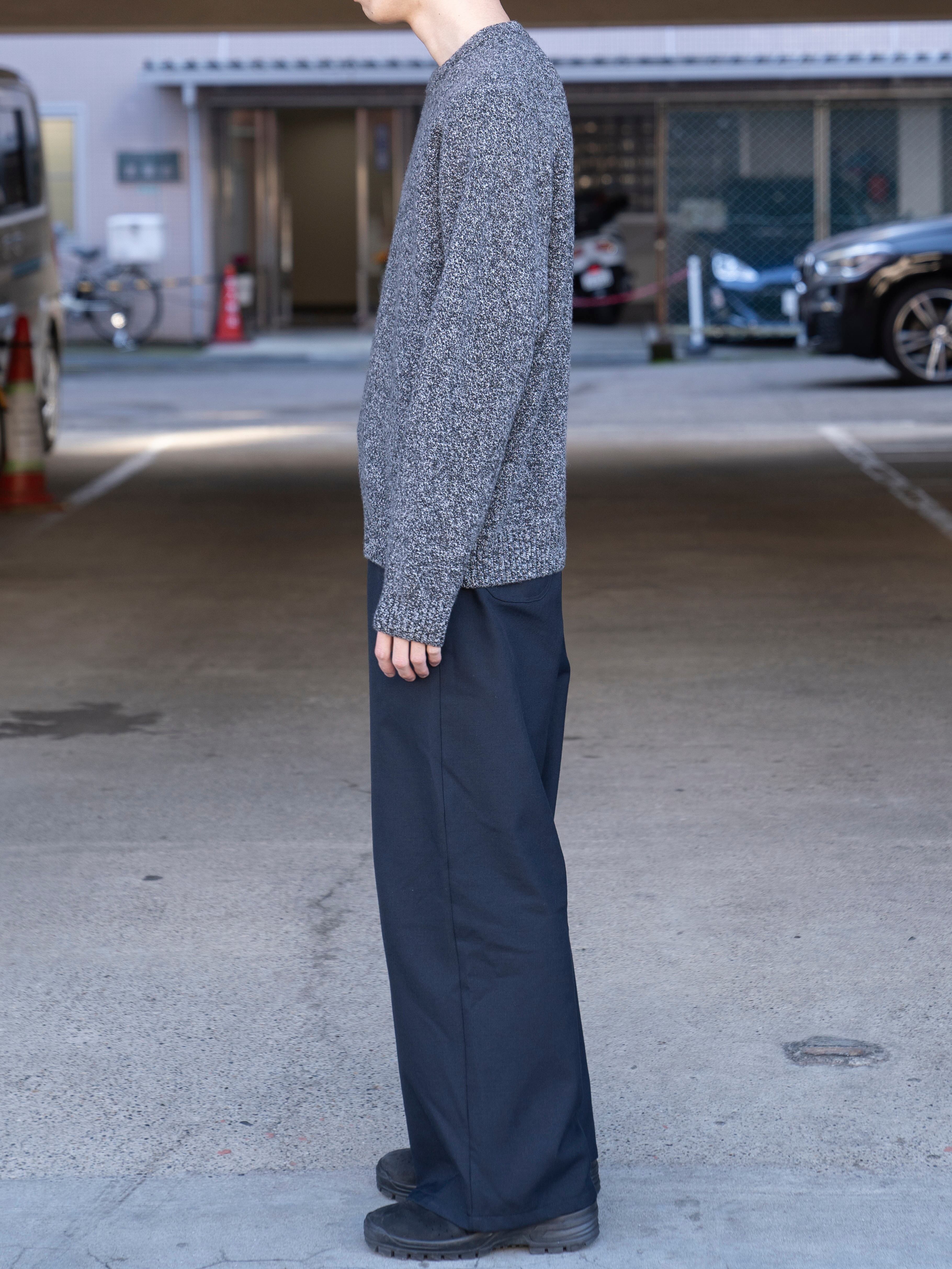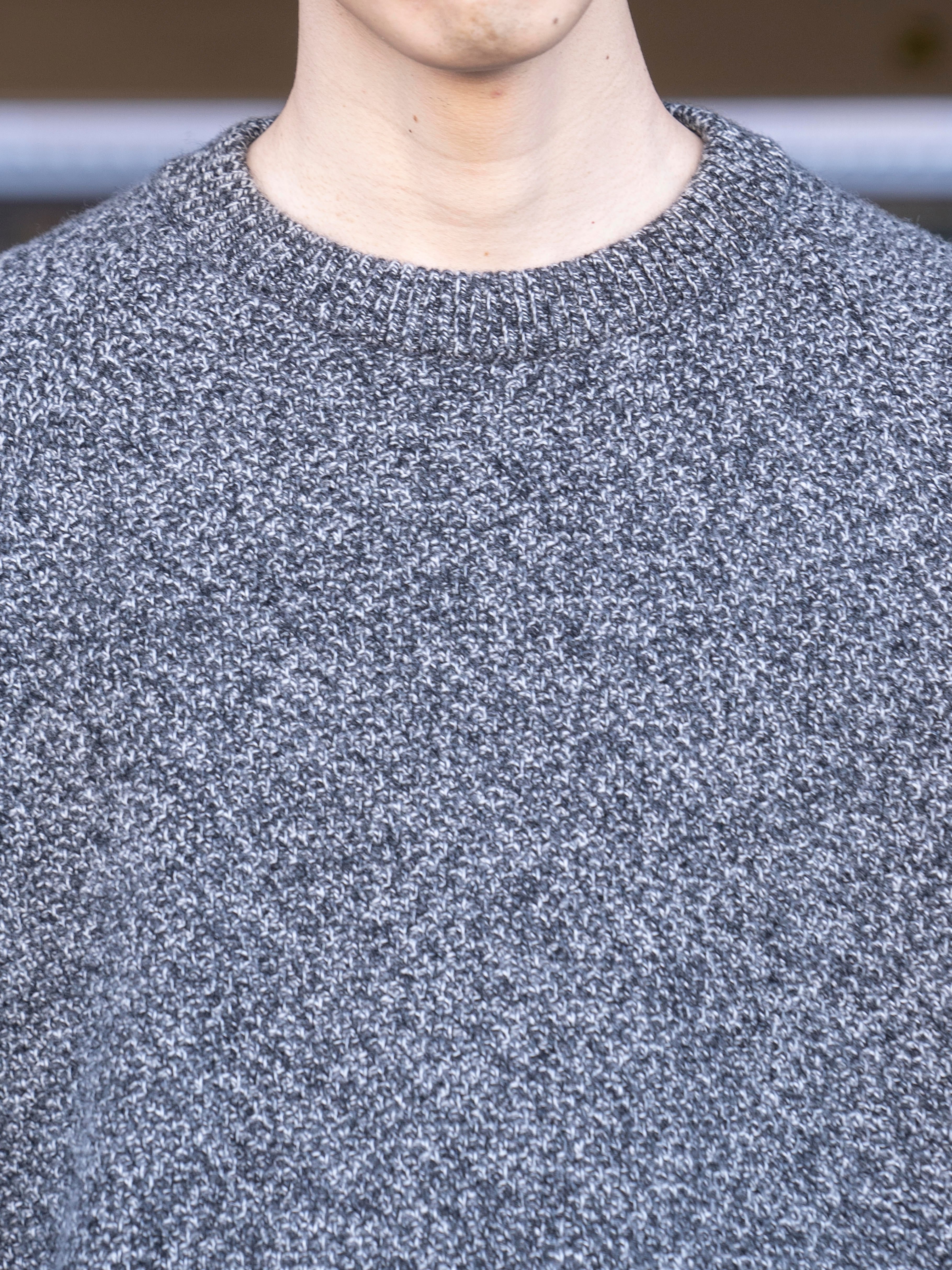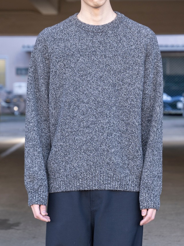 程良いリラックス感が特徴のラグランスリーブのクルーネックセーター。7ゲージを採用し、適正度目で膨らみある着心地に仕上げました。表情ある鹿の子組織が特徴です。衿は、リブダブル付けを採用しています。裾のリブが締まりすぎておらず、カットソーのようなシルエットを採用しています。