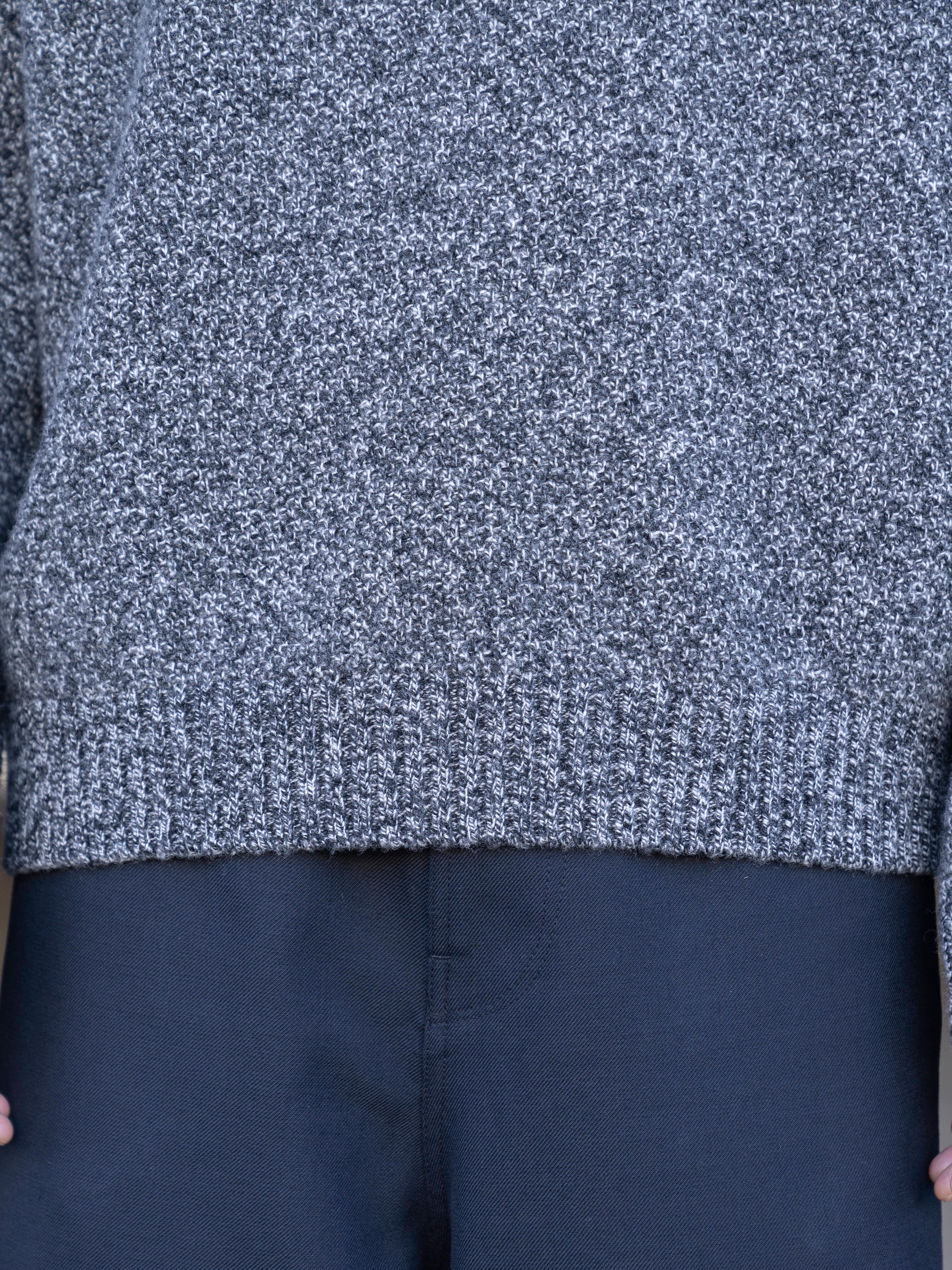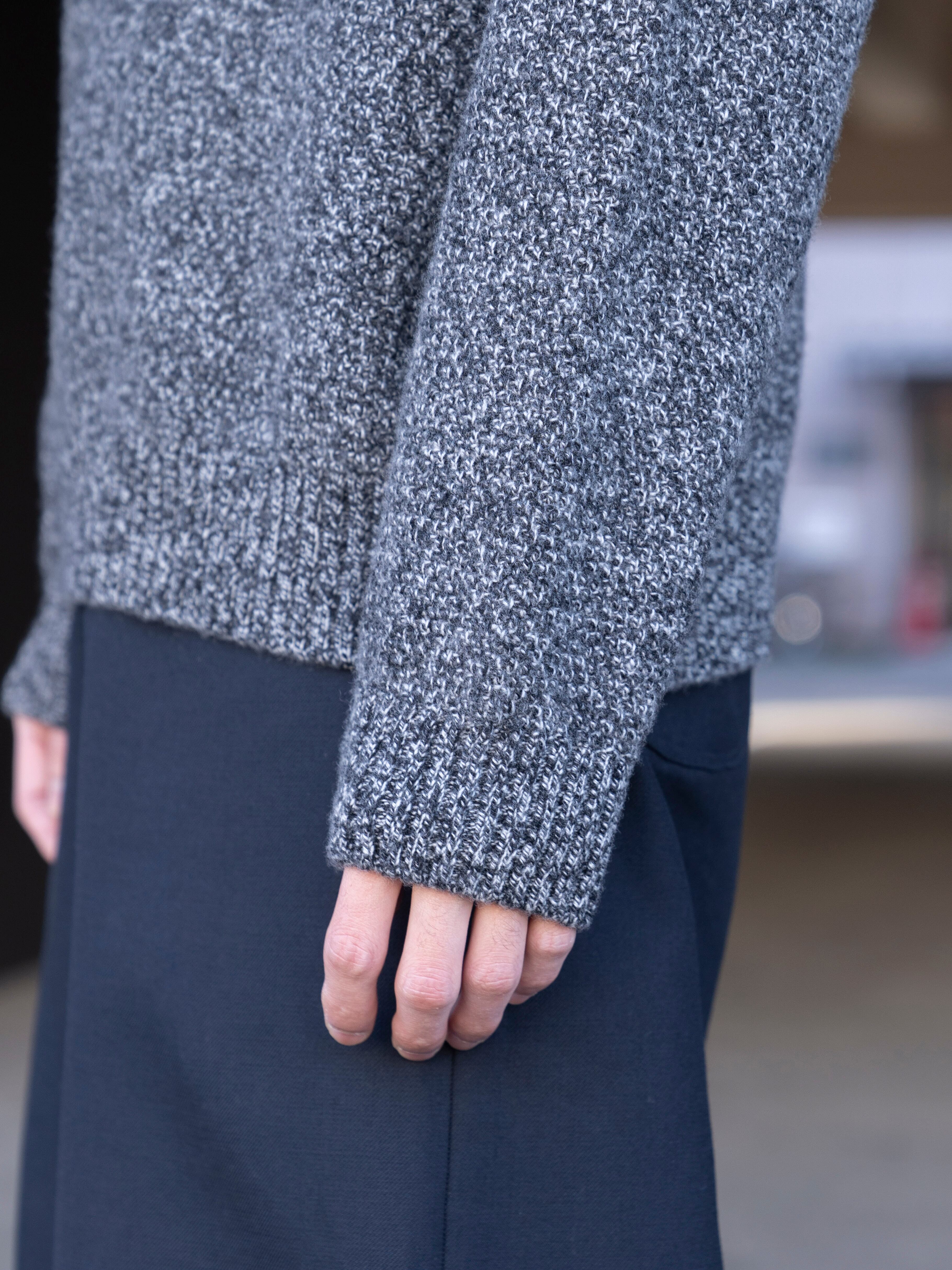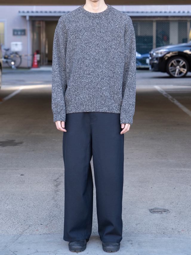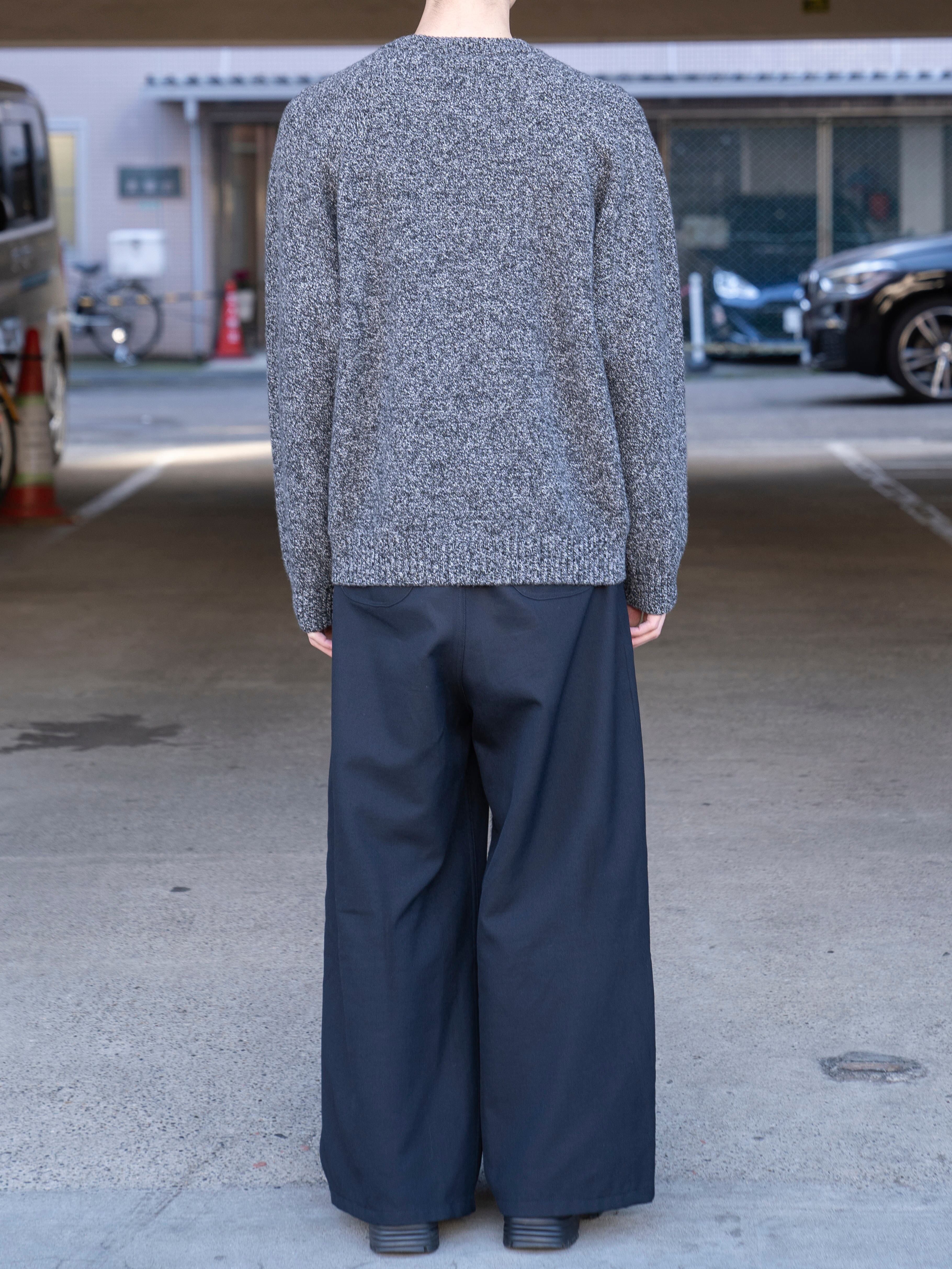 程良いリラックス感が特徴のラグランスリーブのクルーネックセーター。7ゲージを採用し、適正度目で膨らみある着心地に仕上げました。表情ある鹿の子組織が特徴です。衿は、リブダブル付けを採用しています。裾のリブが締まりすぎておらず、カットソーのようなシルエットを採用しています。