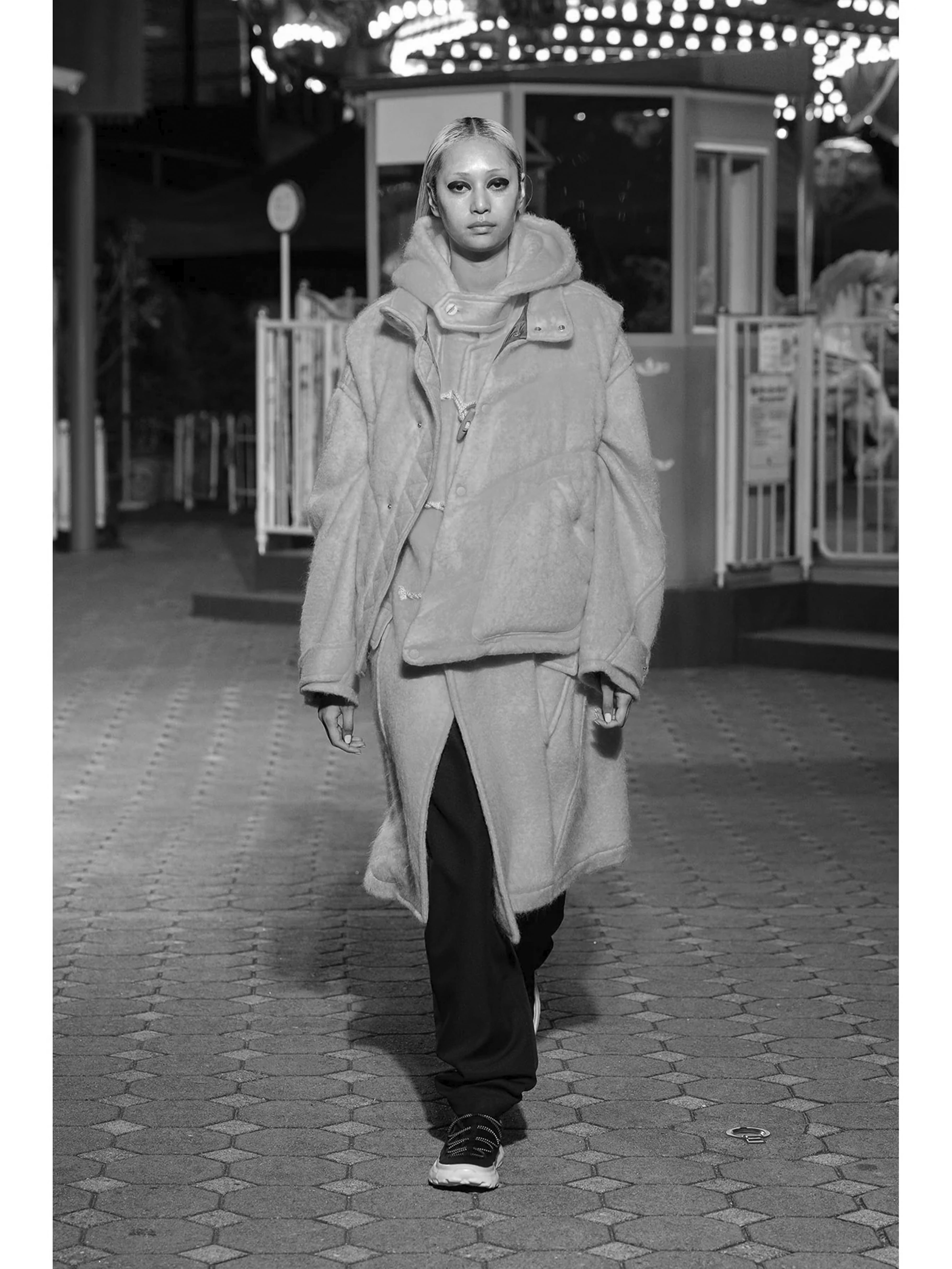 yoshiokubo SHAGGY TWIST DUFFLE COAT BLACK YKF25512