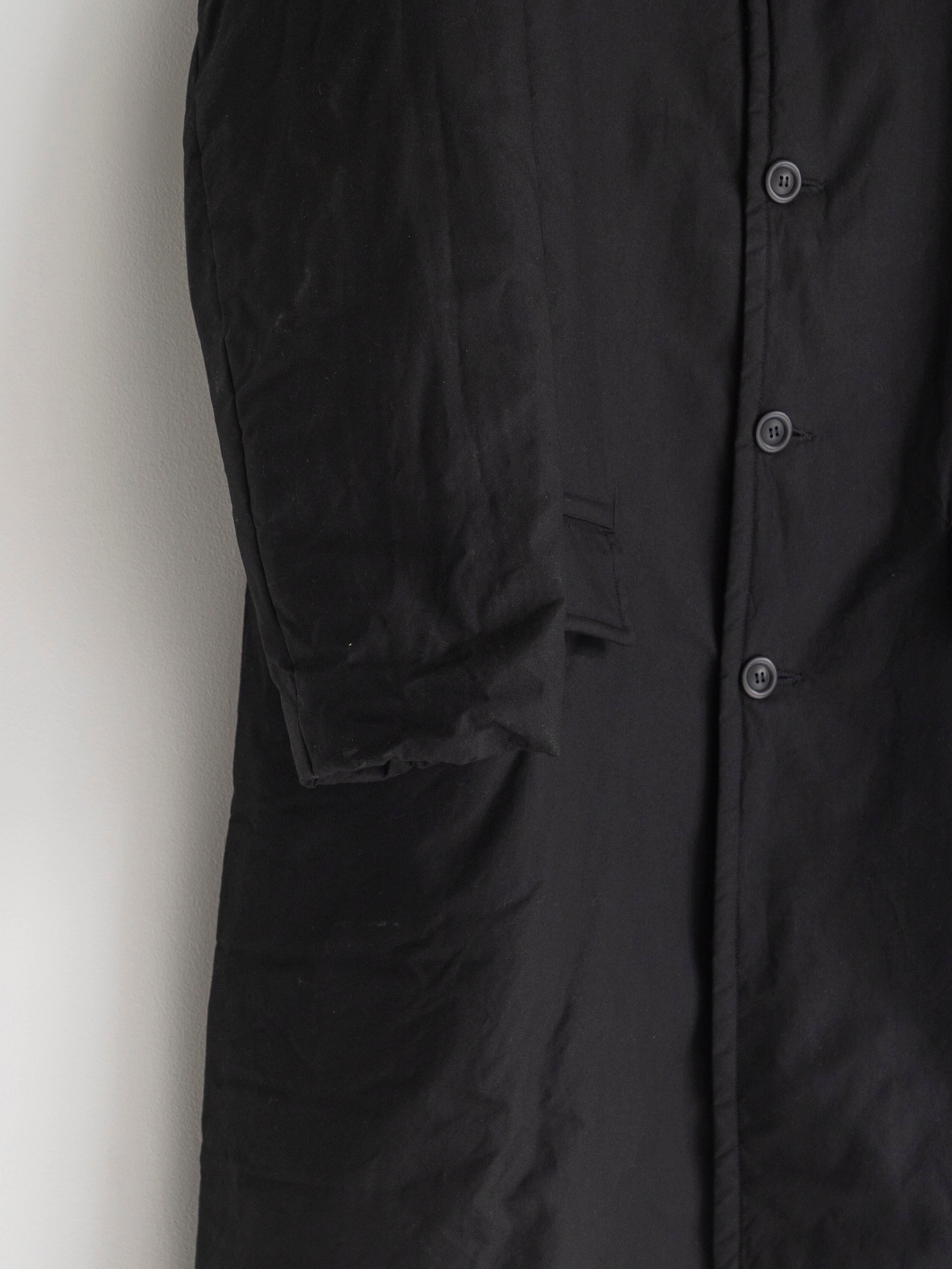ワックスコーティングのソフトな構造のコート。中綿が入っており、コットンの総裏地付きで重さを感じさせずに暖かさを提供します。ストレートのヘムでカットされ、フロントにシングルフラップポケット2つが付いており、実用的な使いやすさとブランドらしい静かな洗練が融合した作りとなっております。