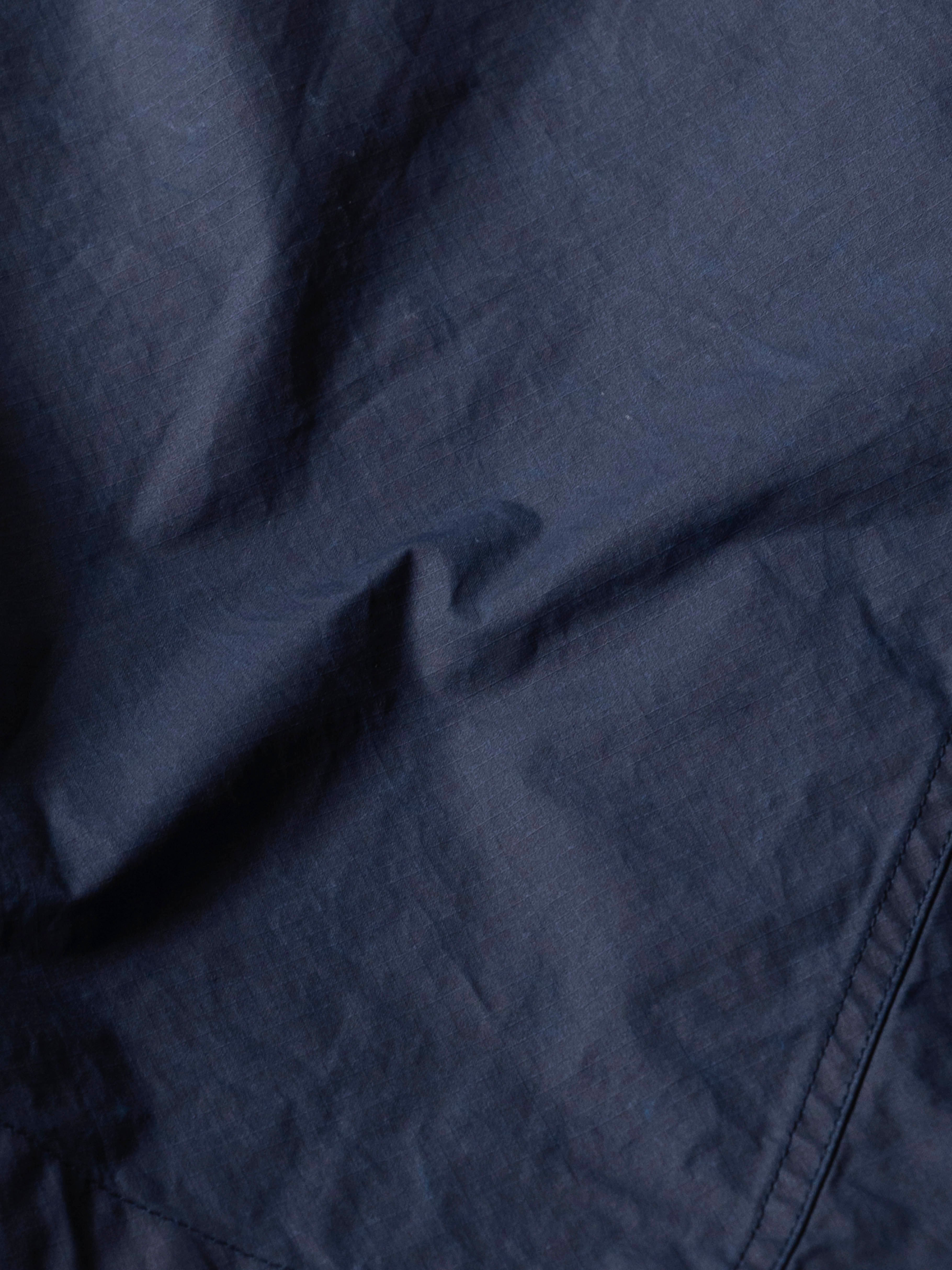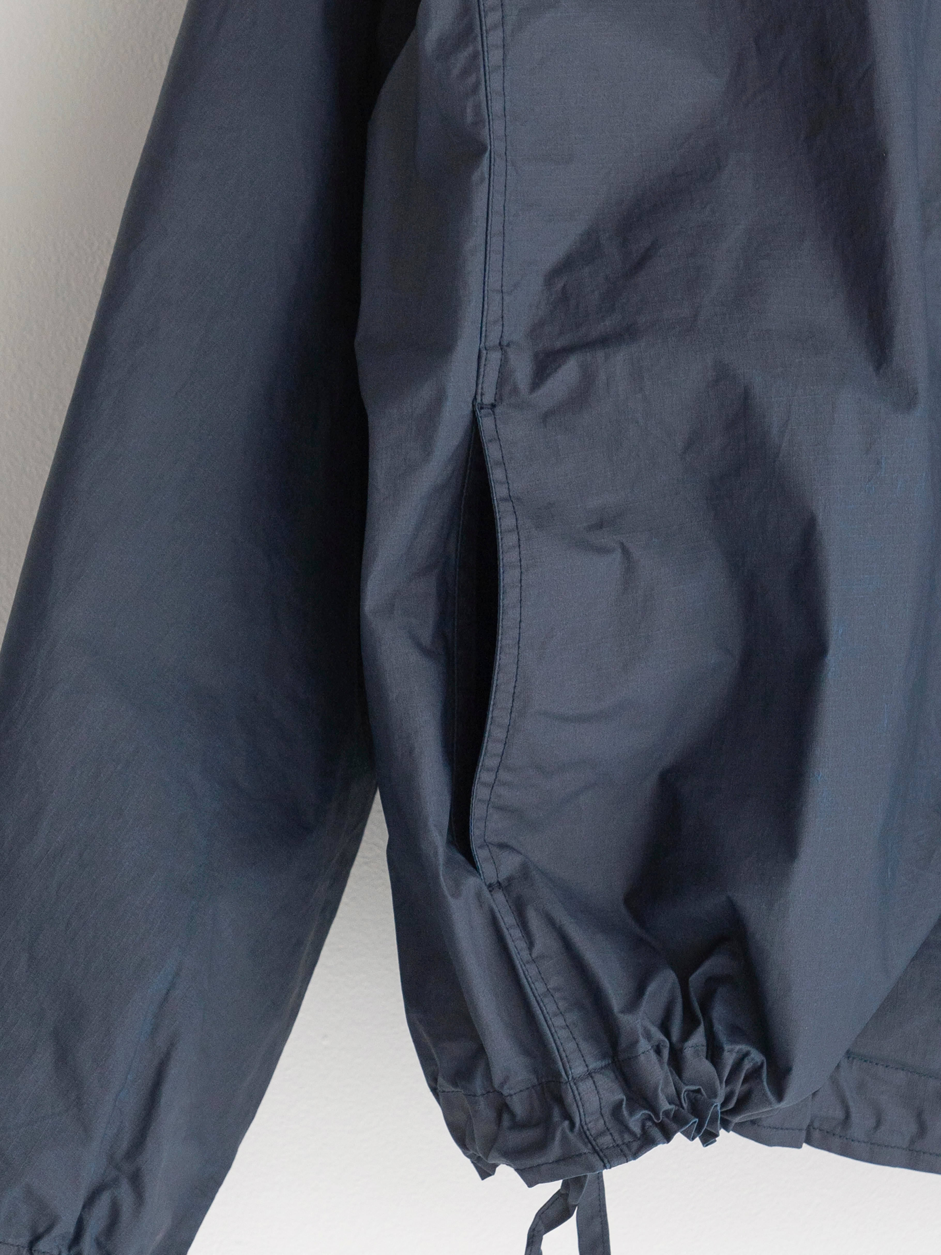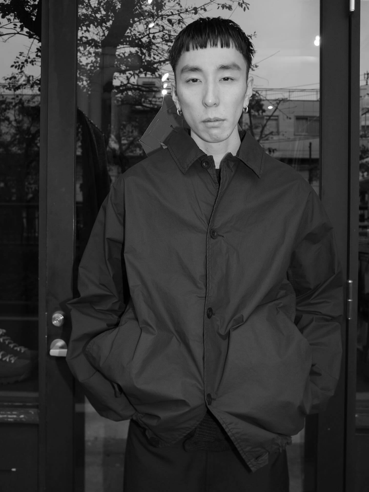 生地は、高密度に織られたコットンに独特のワックス仕上げを施し、防風性と耐光性を備えています。表面はわずかにざらざらしたマットな質感で、タフな生地感に仕上がっております。時間の経過とともに、深みがある自然な緑青が生まれ、耐久性がありながら通気性があり、使い込むほどに美しく経年変化するようにデザインされたアウターウェアです。