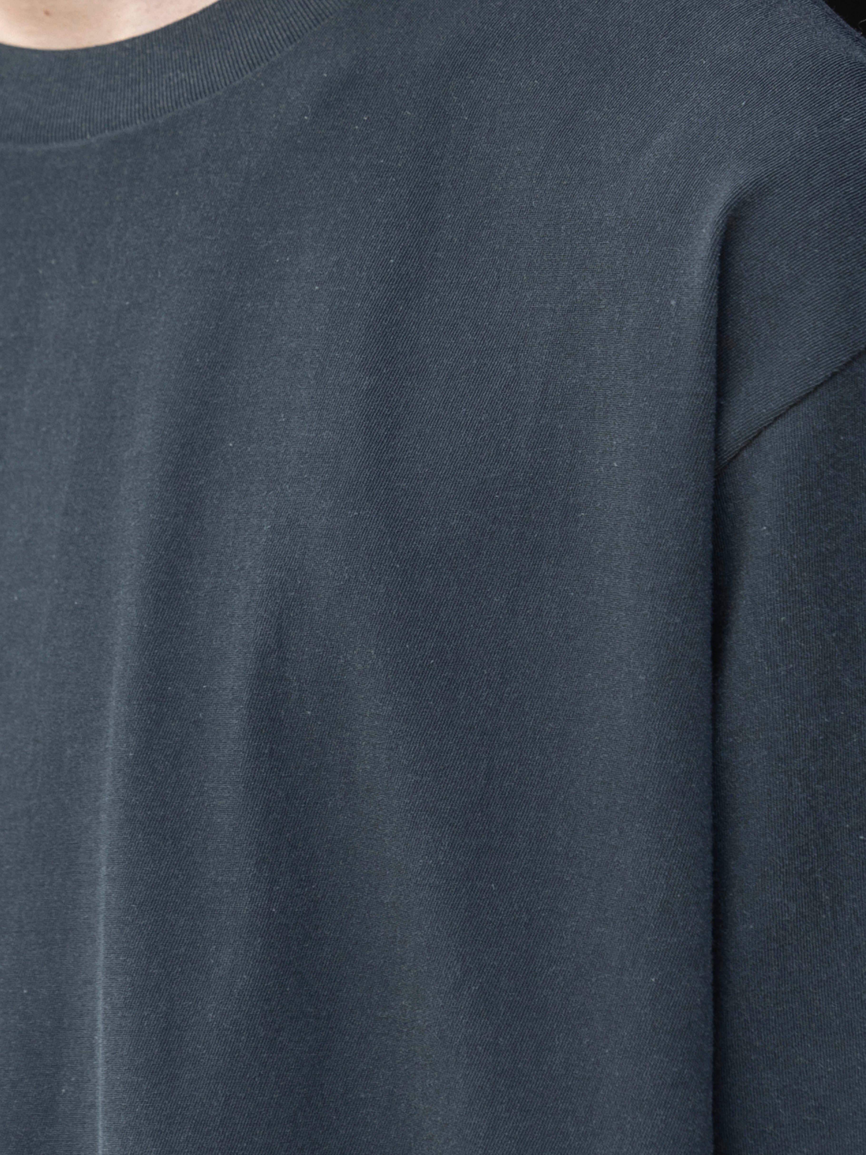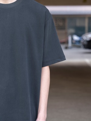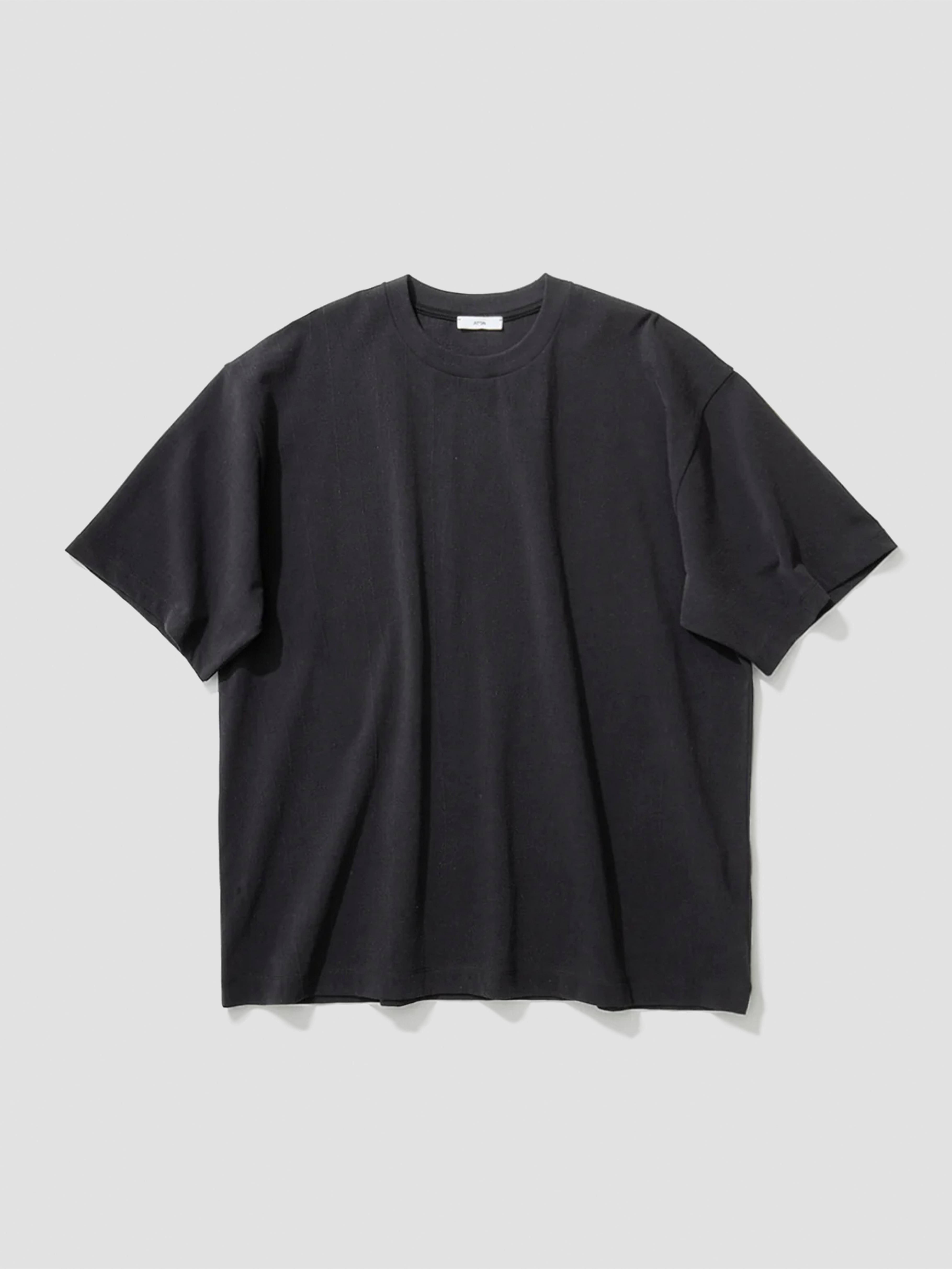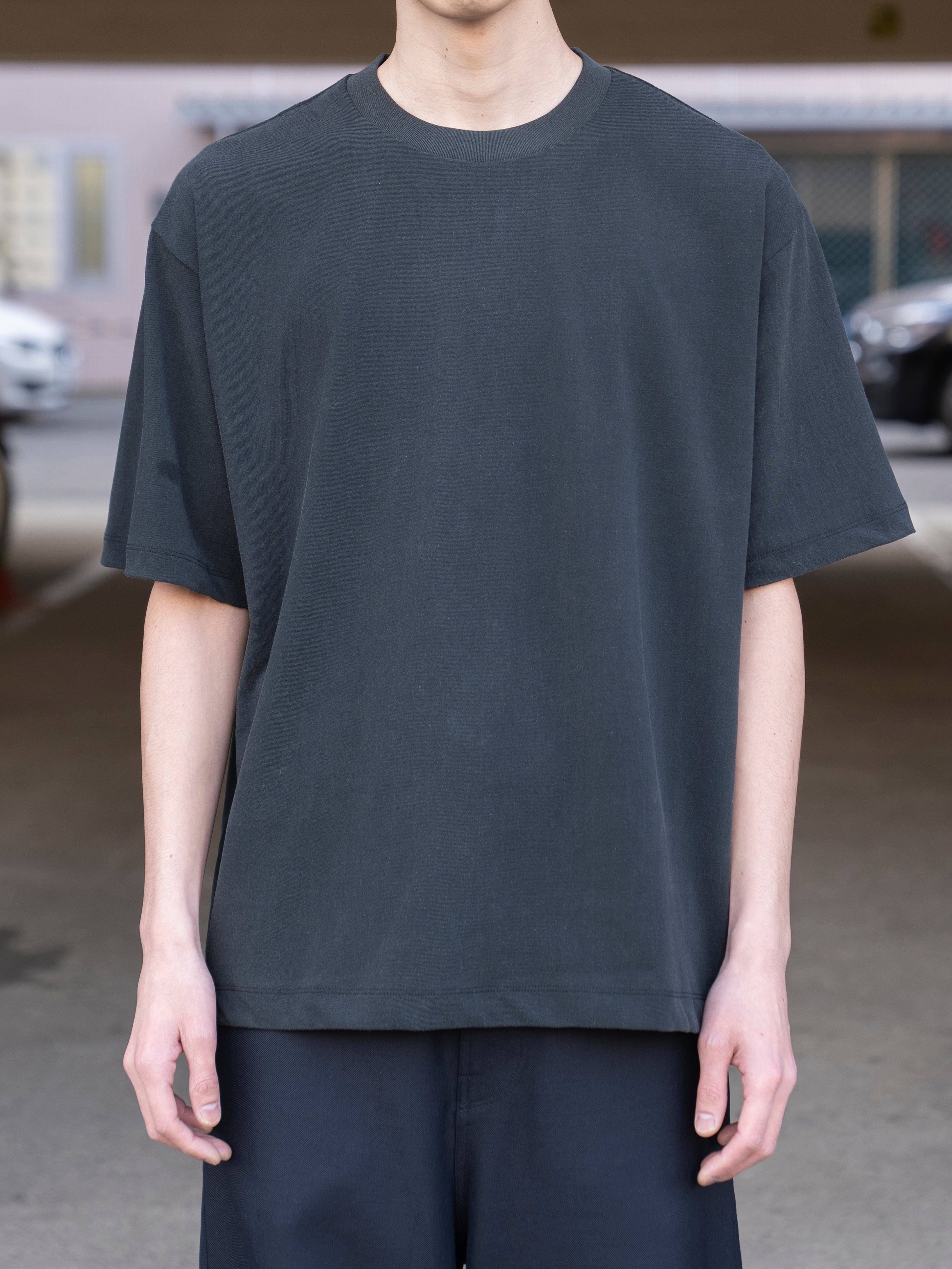 ややオーバーサイズなボックスシルエットが特徴のTシャツ。肉厚な素材なので、透けも気になりません。首元はフライスでしっかりと詰まっており、すっきりとした印象です。