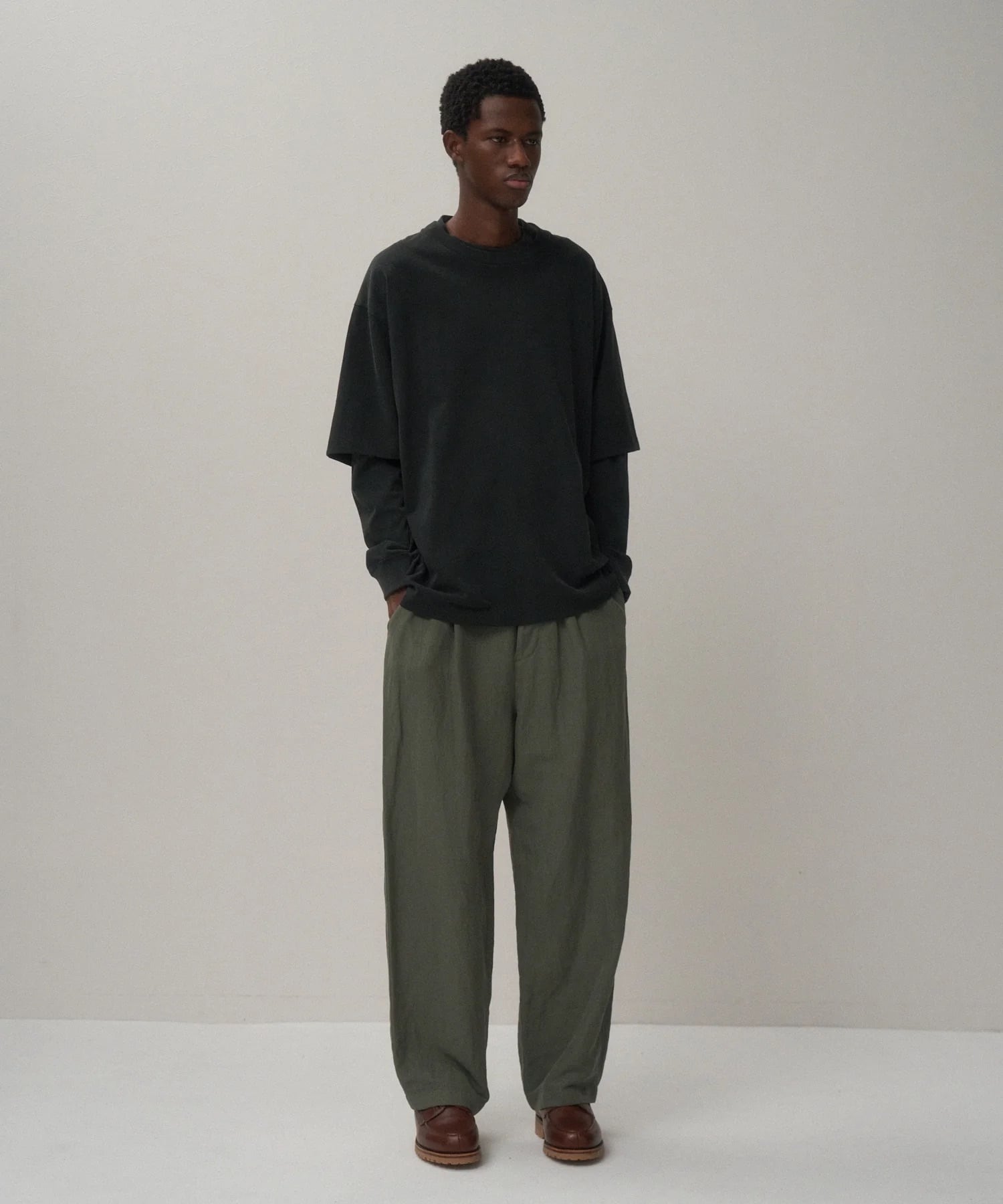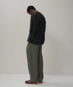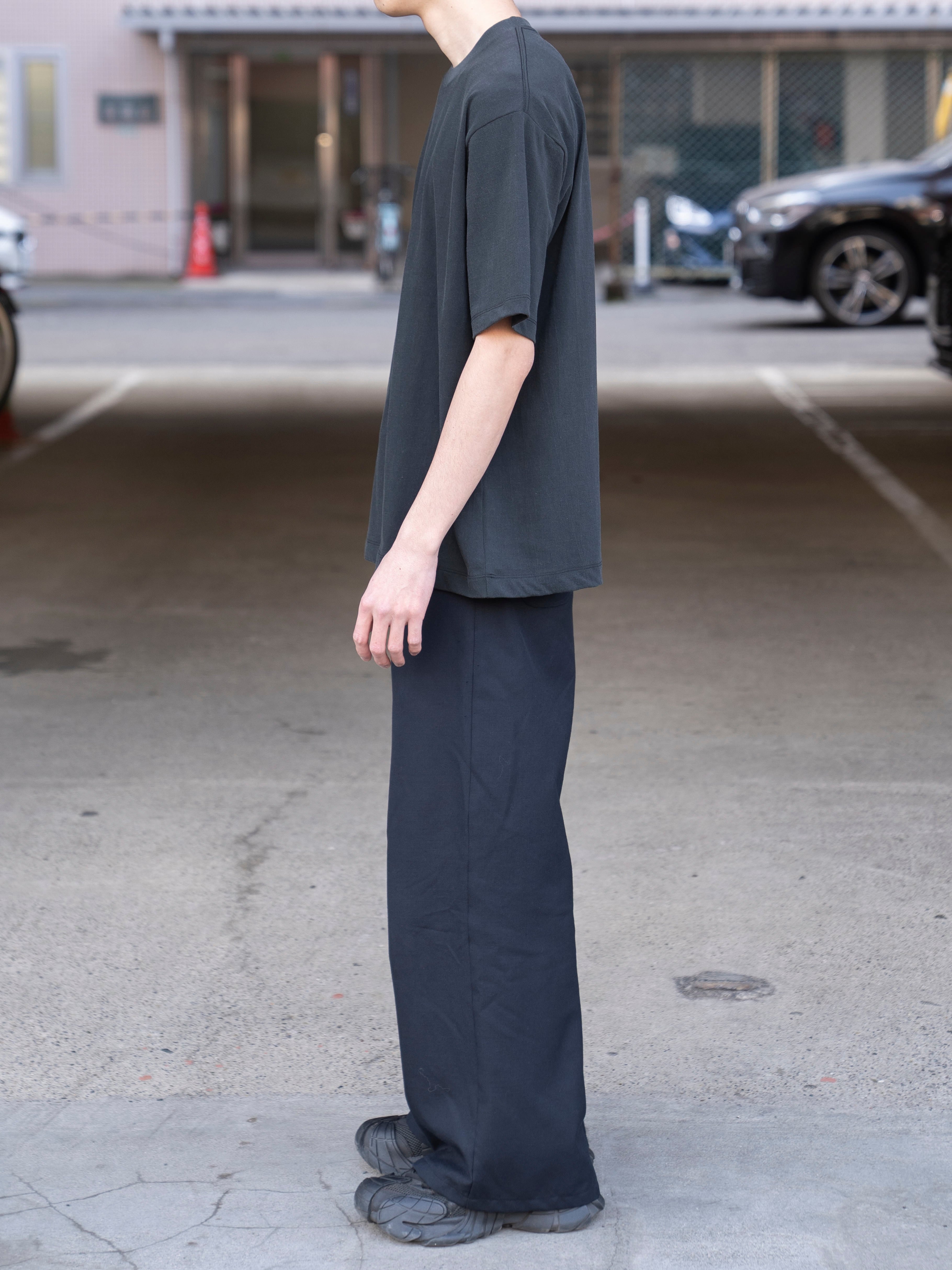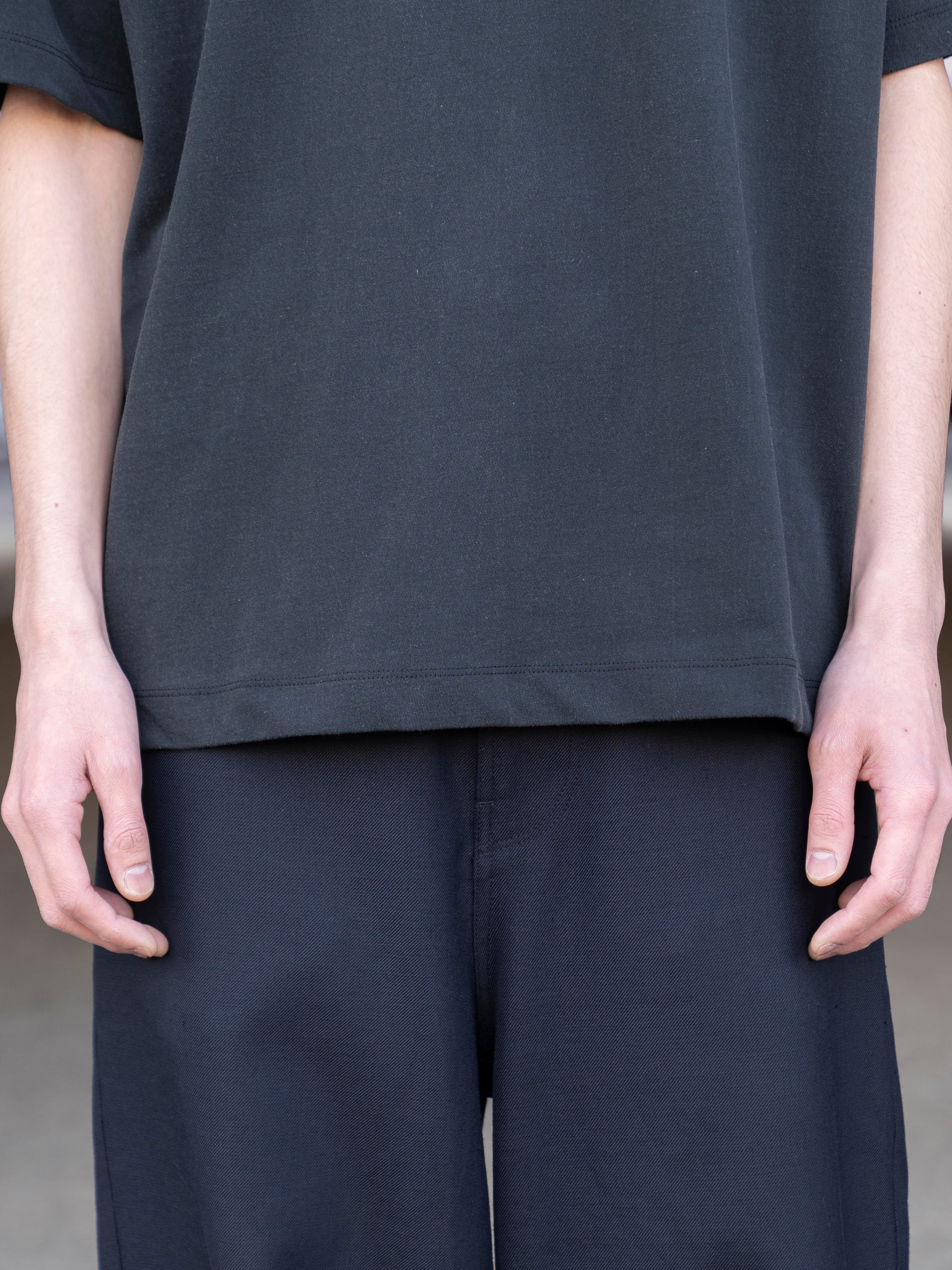 ややオーバーサイズなボックスシルエットが特徴のTシャツ。肉厚な素材なので、透けも気になりません。首元はフライスでしっかりと詰まっており、すっきりとした印象です。