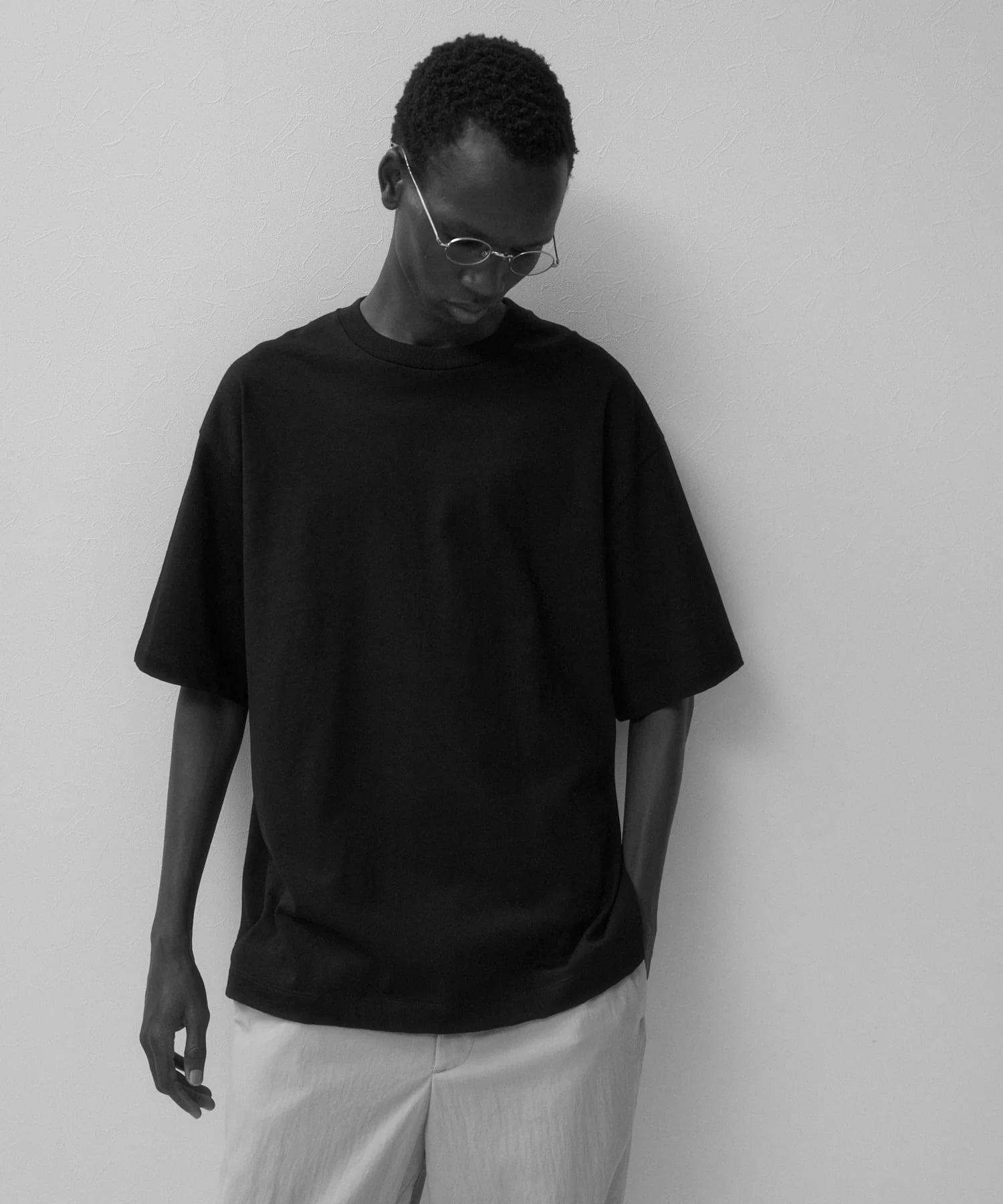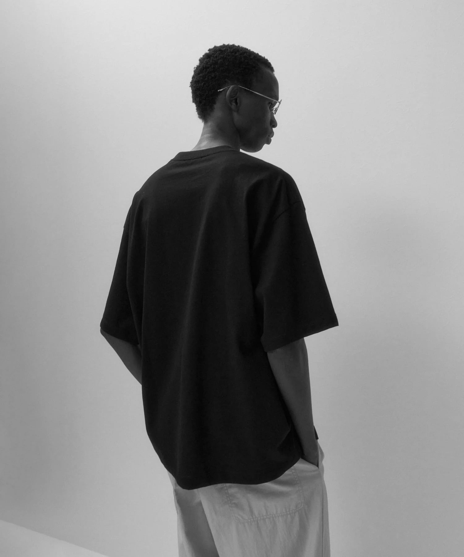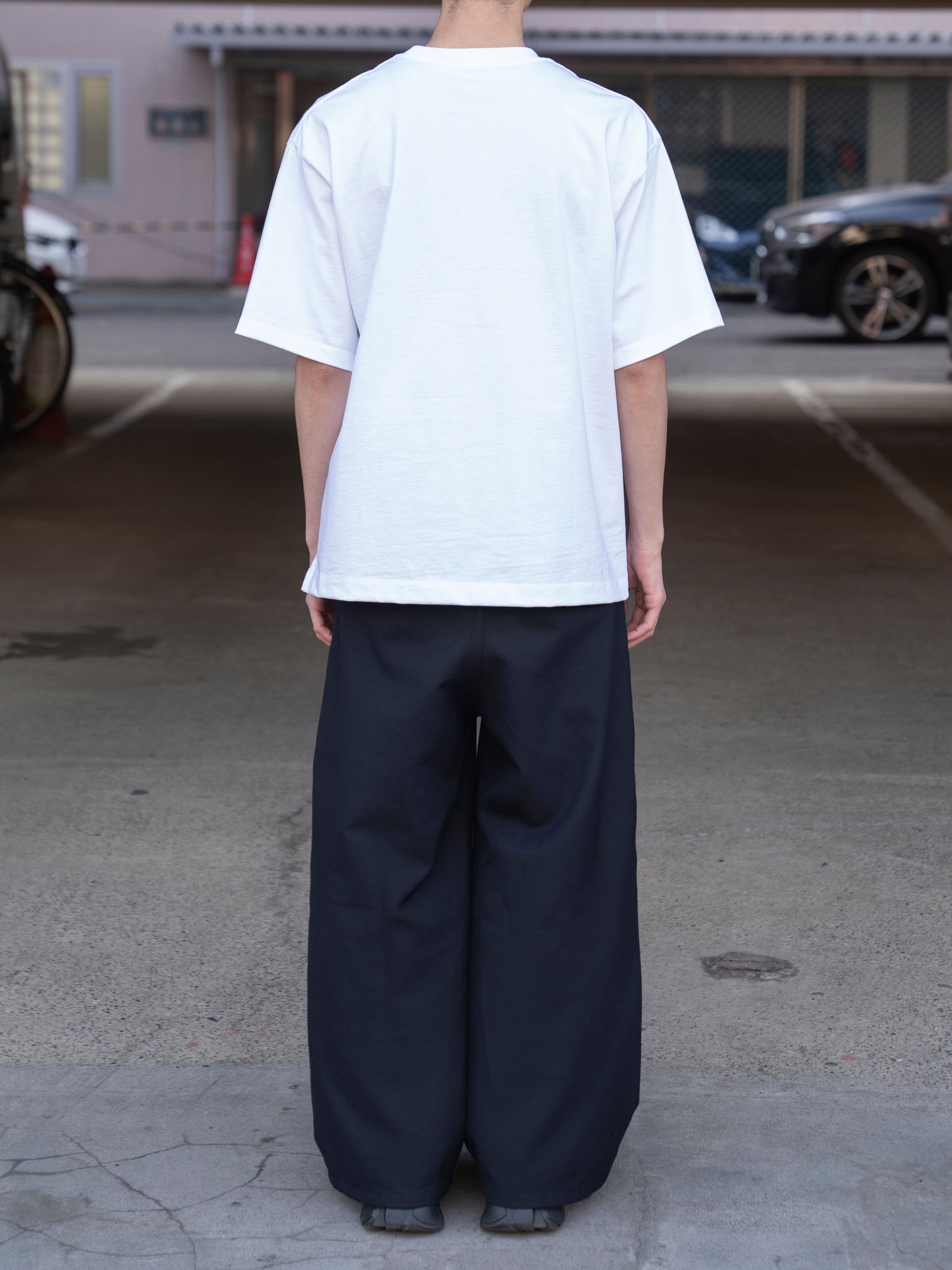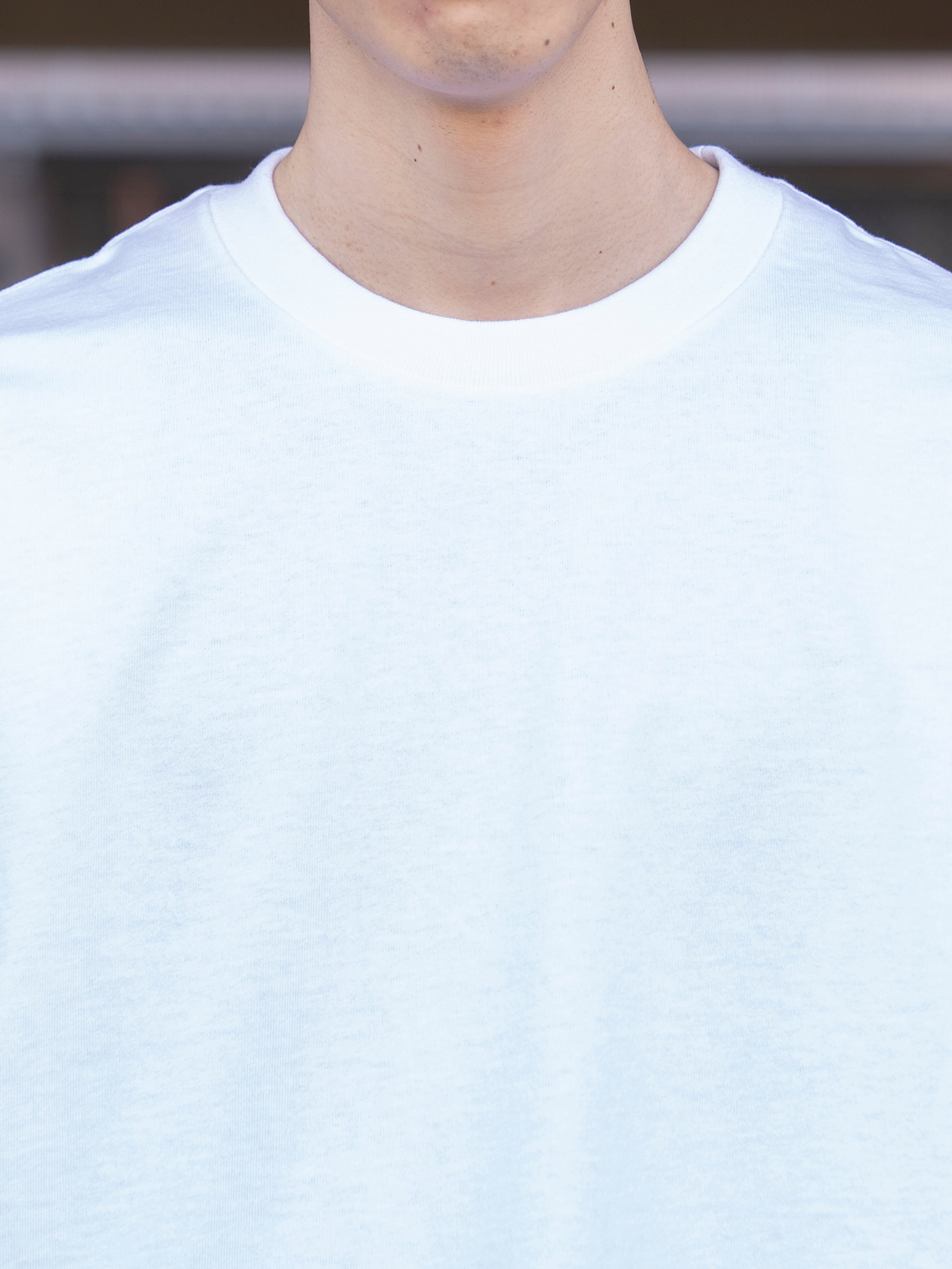 ややオーバーサイズなボックスシルエットが特徴のTシャツ。首元はフライスでしっかりとつまっており、きれいすぎず、カジュアルすぎず、どんなシーンでも活躍してくれます。