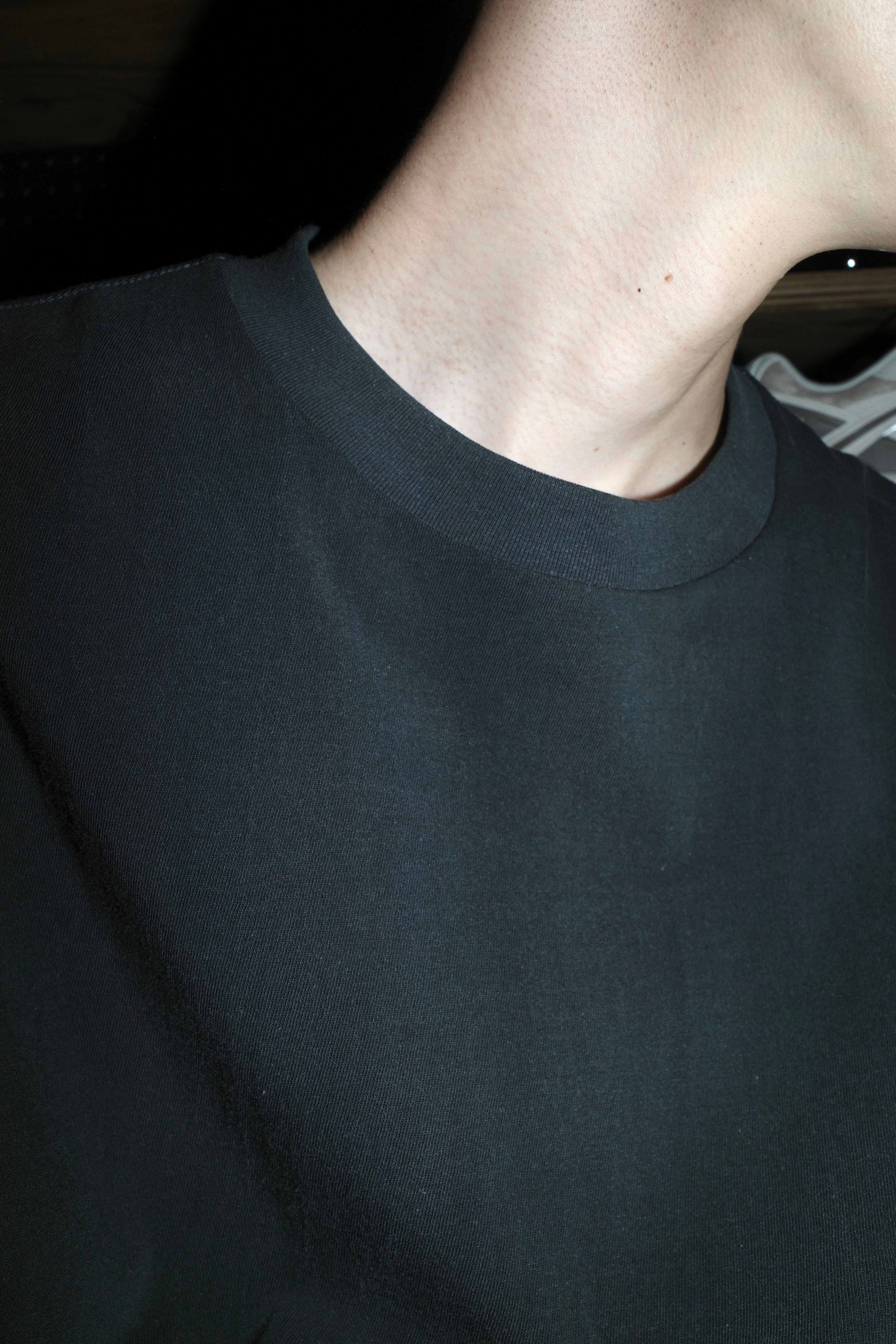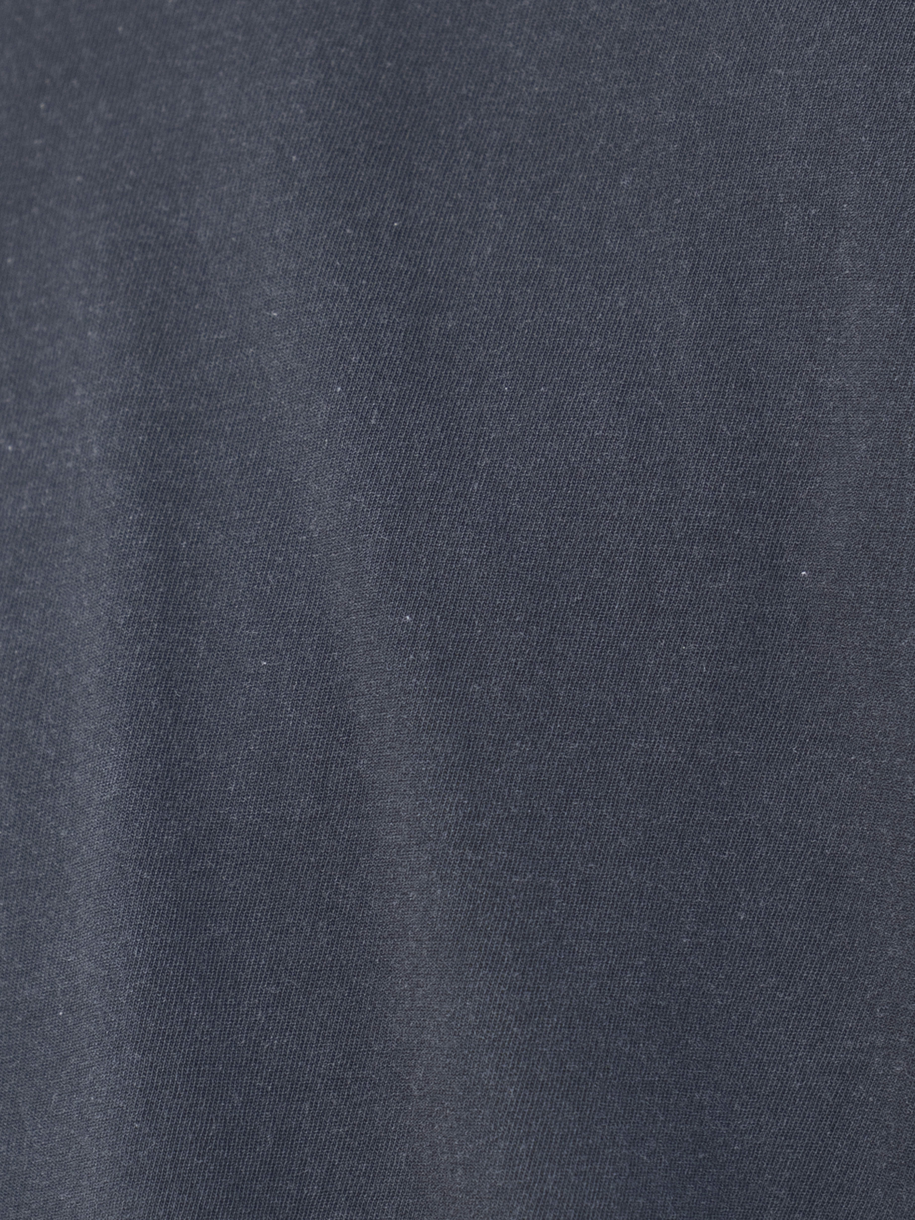 インドの手積みの超長綿の強撚糸を和歌山市で編み立て、エイジングされた古着のような色味を特殊な染色方法にて表現しました。コットンの強撚糸からくるサラッとした肌触り、肉厚なのに洗濯後も乾きやすく、糸が縮んだ際に発生する細かな凹凸が、肌との接地面が少なくした、夏の時期に最適なATONオリジナルのジャージー素材です。