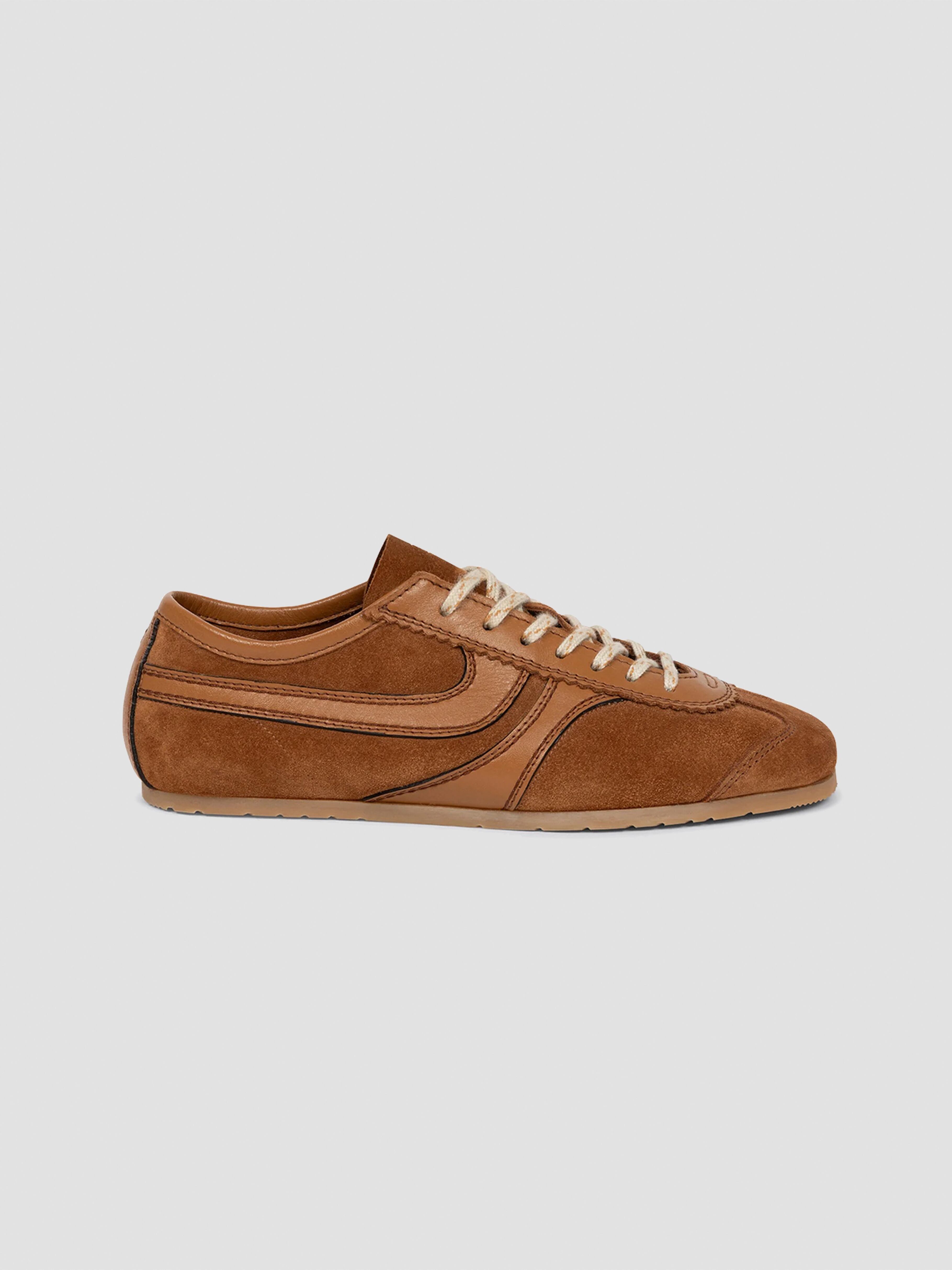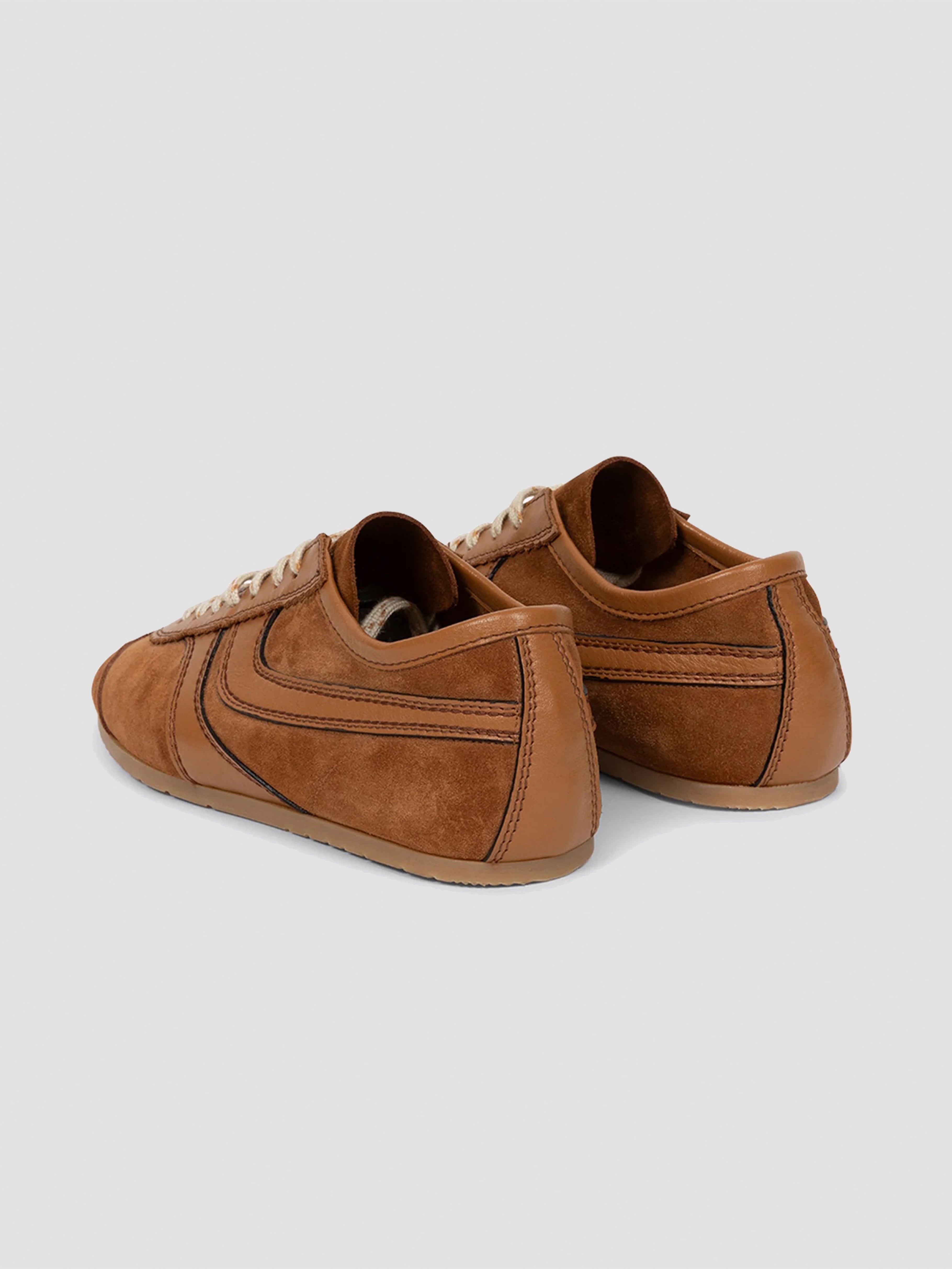70年代のマラソン・スピリットにインスパイアされたスエード製スニーカー。ナッパレザーのアッパーと薄いシグネチャー・ソールが特徴。