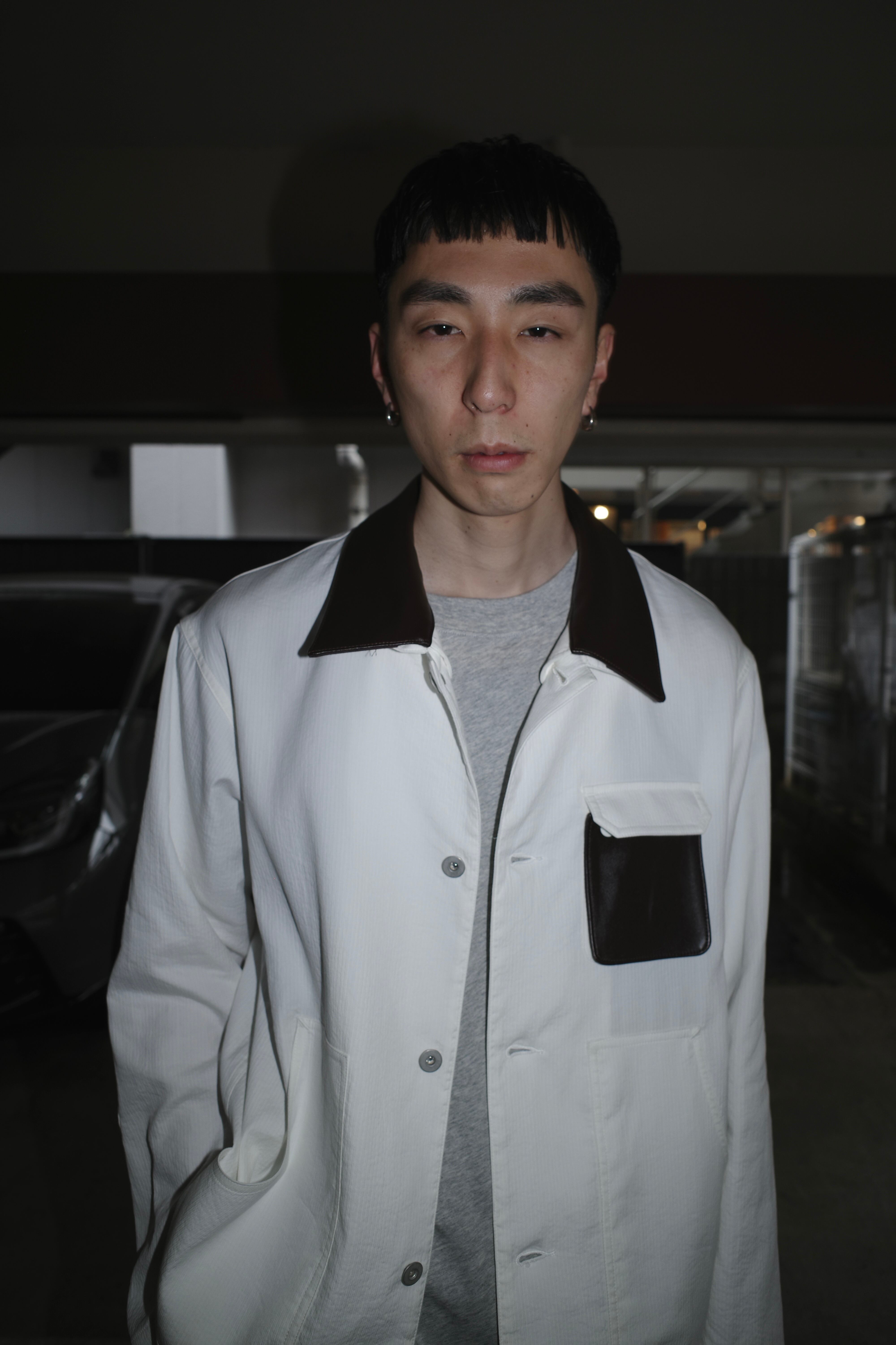 付け替え可能の襟、胸元のレザー素材の生地を付属。リラクシーなドロップショルダーのボックスシルエットで現代的なバランスに再構築しております。