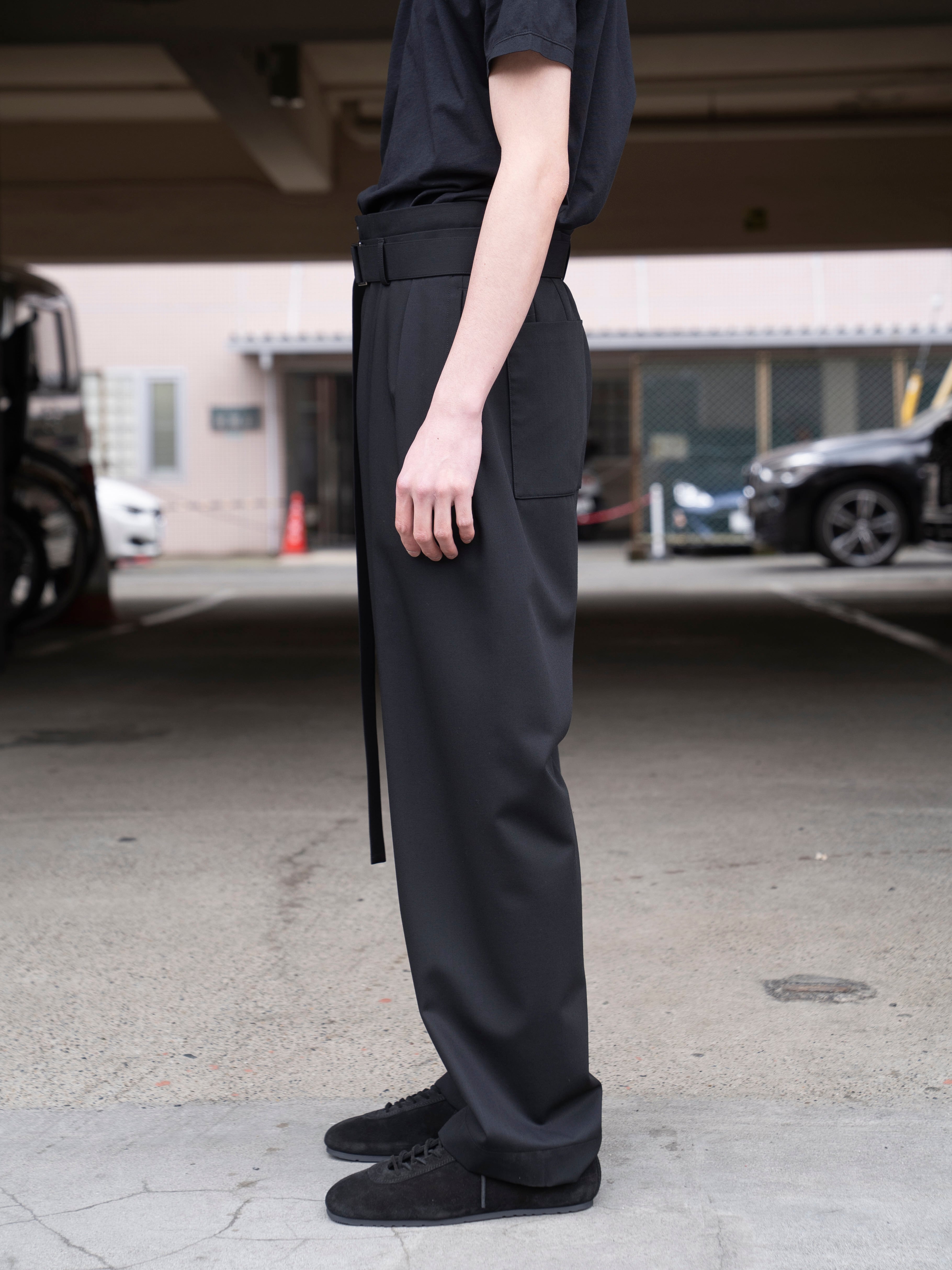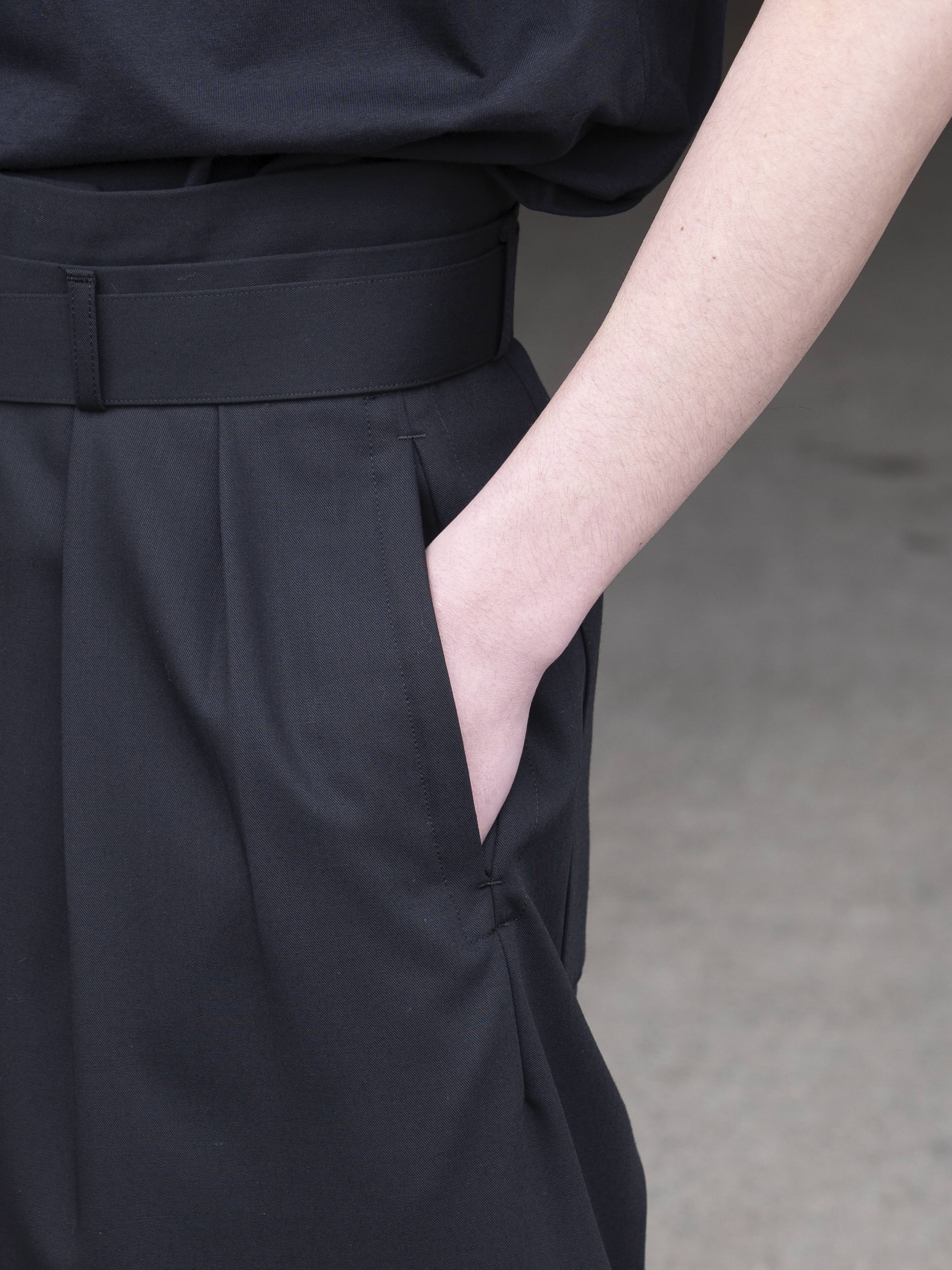 ナイロンフィラメントの芯にノンミュールジングのウルトラファインメリノを巻きつけたサイロサフィル糸を使用した2/1 ウールギャバジン。生地面に見えるのと肌に当たるのはファインメリノの天然繊維でセミ強撚にすることでドライなタッチの質感になっています。ナイロン糸が芯にあるため防縮機能があることから夏のシーズンにはイージーケアが嬉しいウォッシャブル生地となっています。