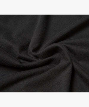 同糸の特徴である、光沢感、ぬめり感、しなやかさを最大限に生かすため表面に微起毛加工を施し、製品染めで仕上げました。ハイゲージで編み立てたので経年しても風合いが損なわれにくいのが特徴です。