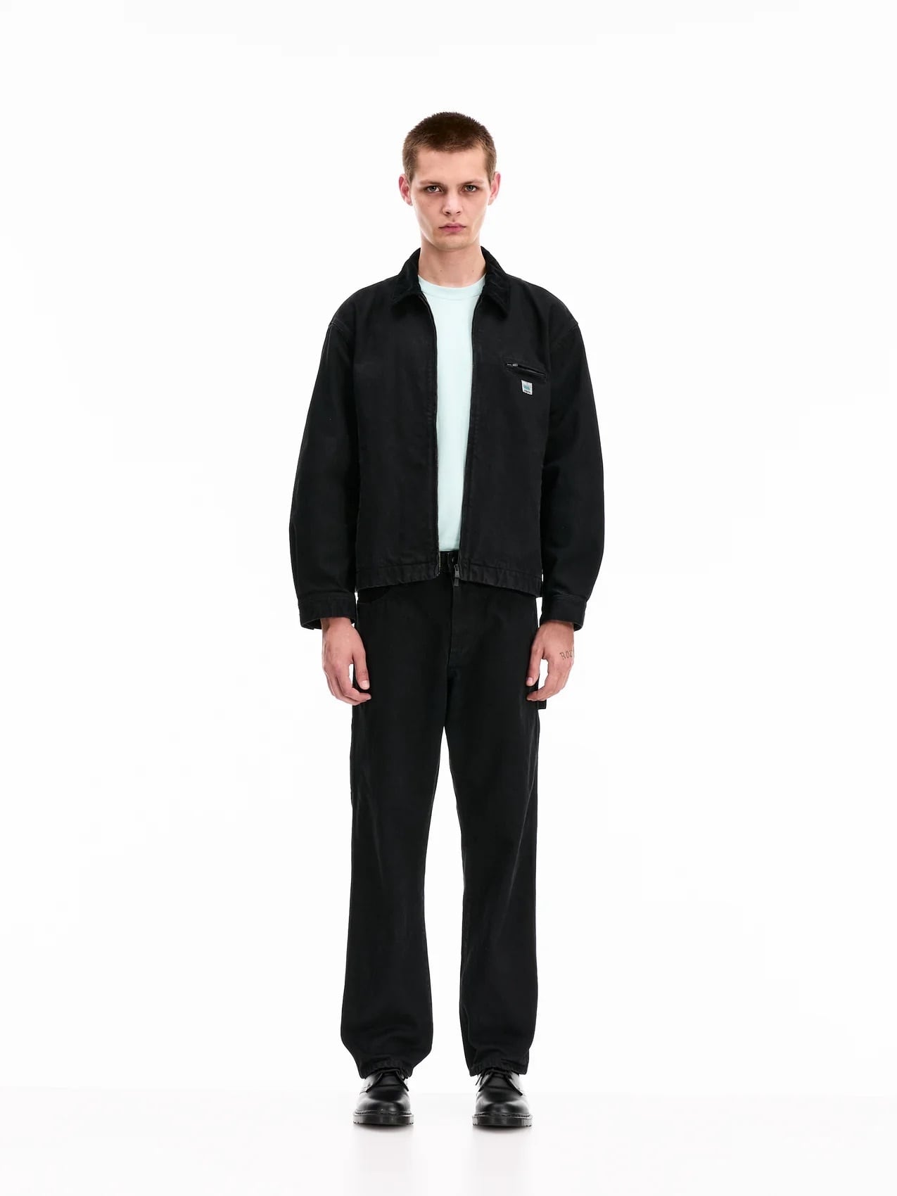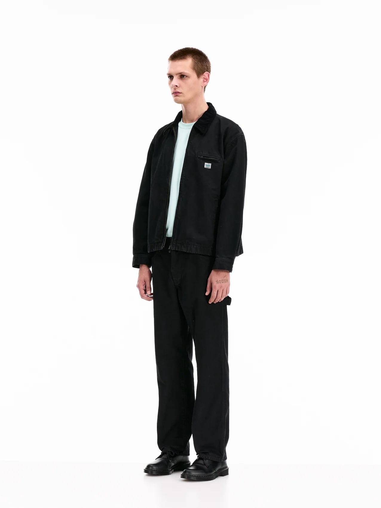VOWELS CORD COLLARED ZIP UP BLACK VO-26SS-OW065