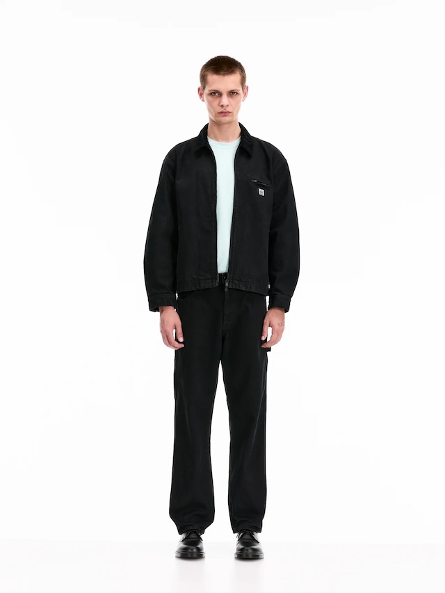 1980年代のワークウェアを参考に独特な色と風合いを狙って製品染めで作成したジップアップジャケット