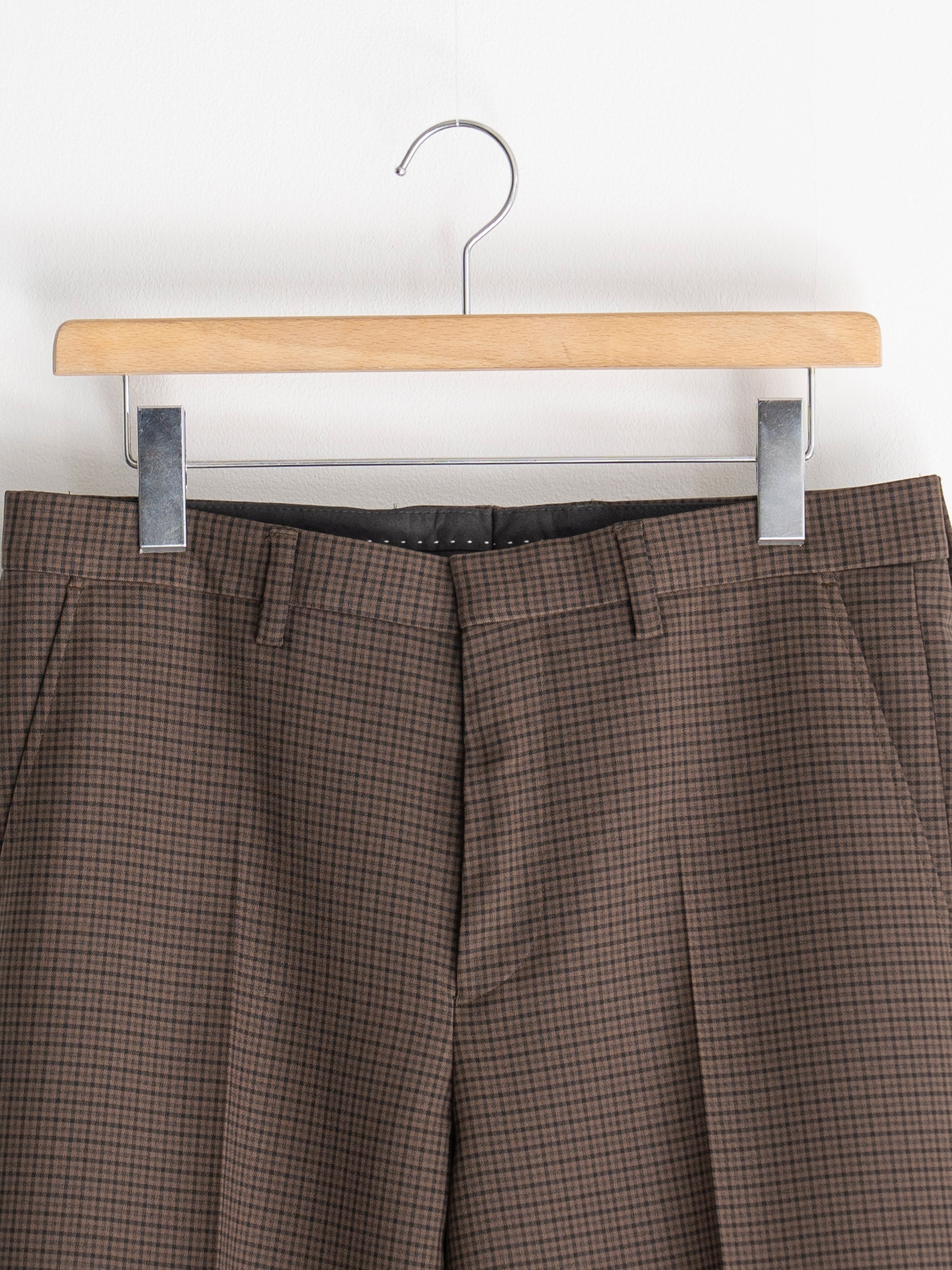 DRIES VAN NOTEN DOUBLE FACED GINGHAM CHECK PANTS MUD 261-020996-3053