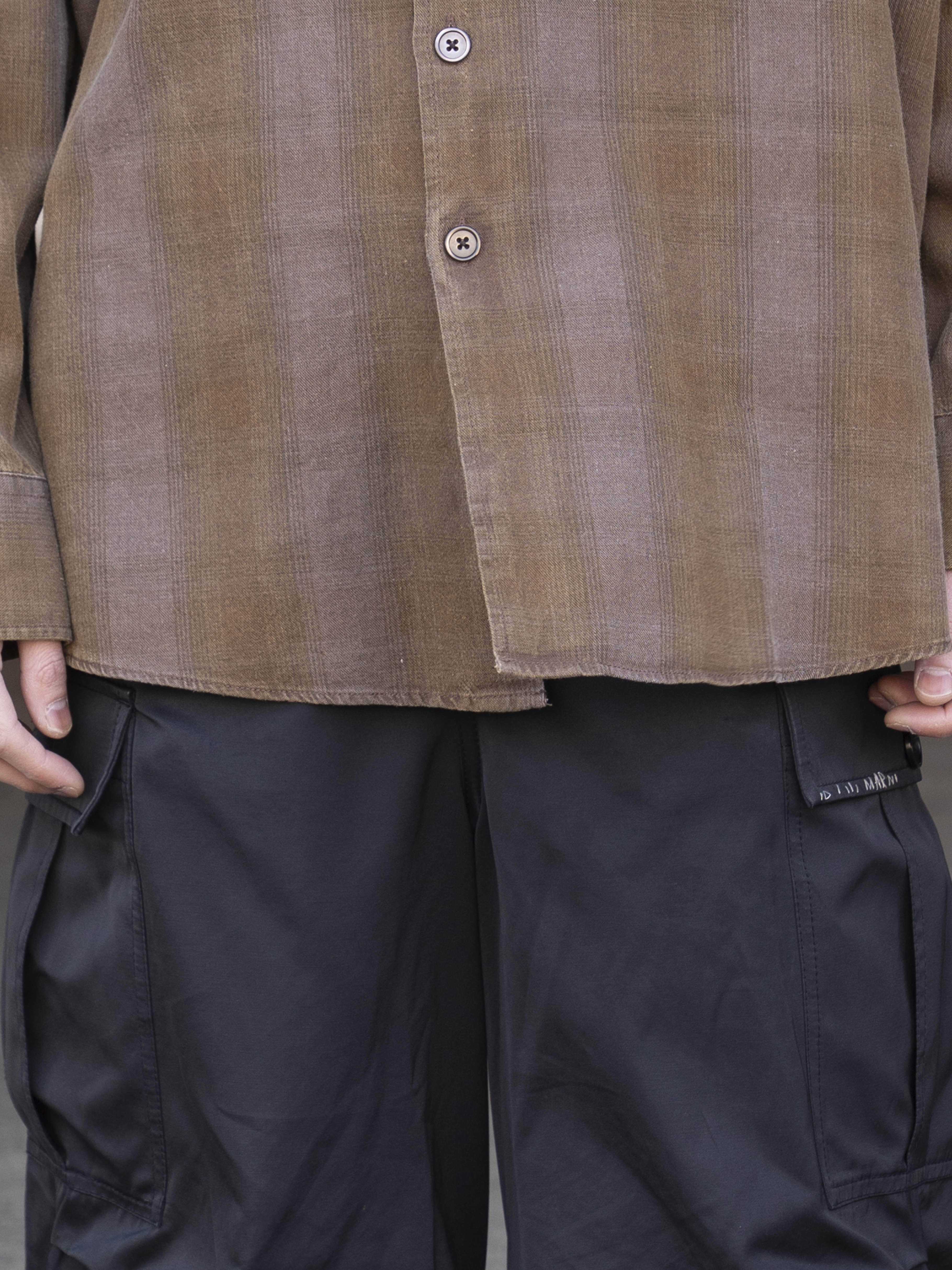 ダコタフランネルチェックの「ボロードシャツ」。耐久性のあるツイル織りのポルトガル産コットンフランネルにクラシックなチェック柄を施したメンズボロードシャツは、オーバーサイズフィットで、使い込んだような風合いを出すためにウォッシュ加工を施した顔料コーティングの表面、マザーオブパールボタン、マイタードカフス、カーブした裾、そして胸ポケットが1つ付いています。