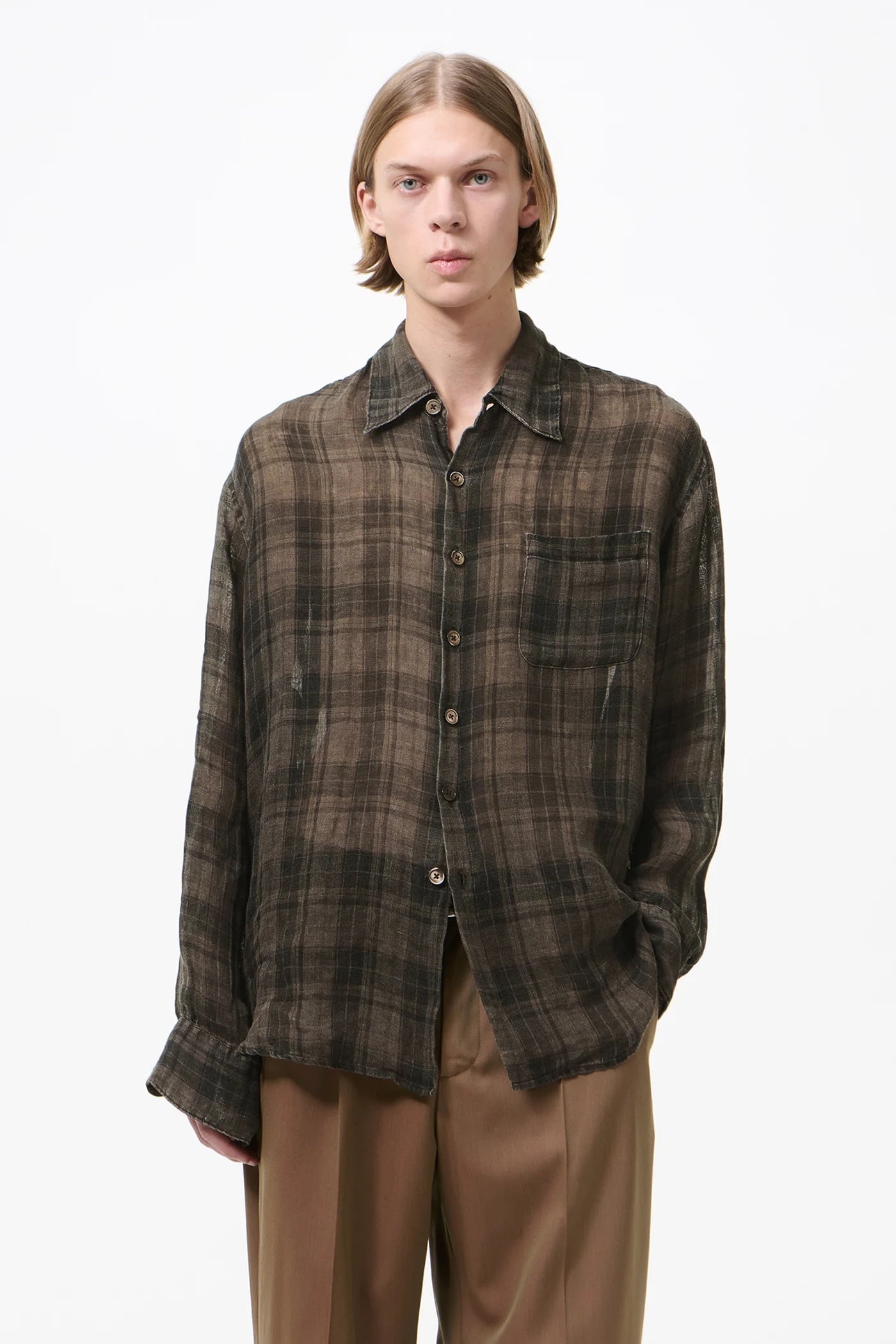 OUR LEGACY ABOVE SHIRT Penumbra Check Sheercoat Linen M2262AP