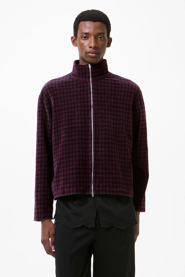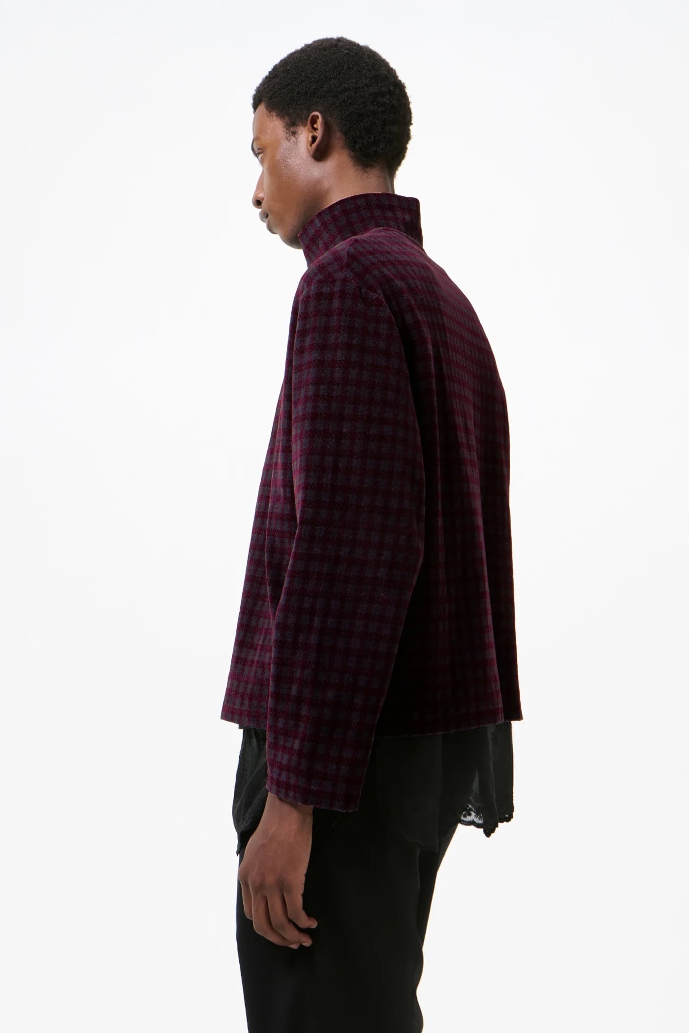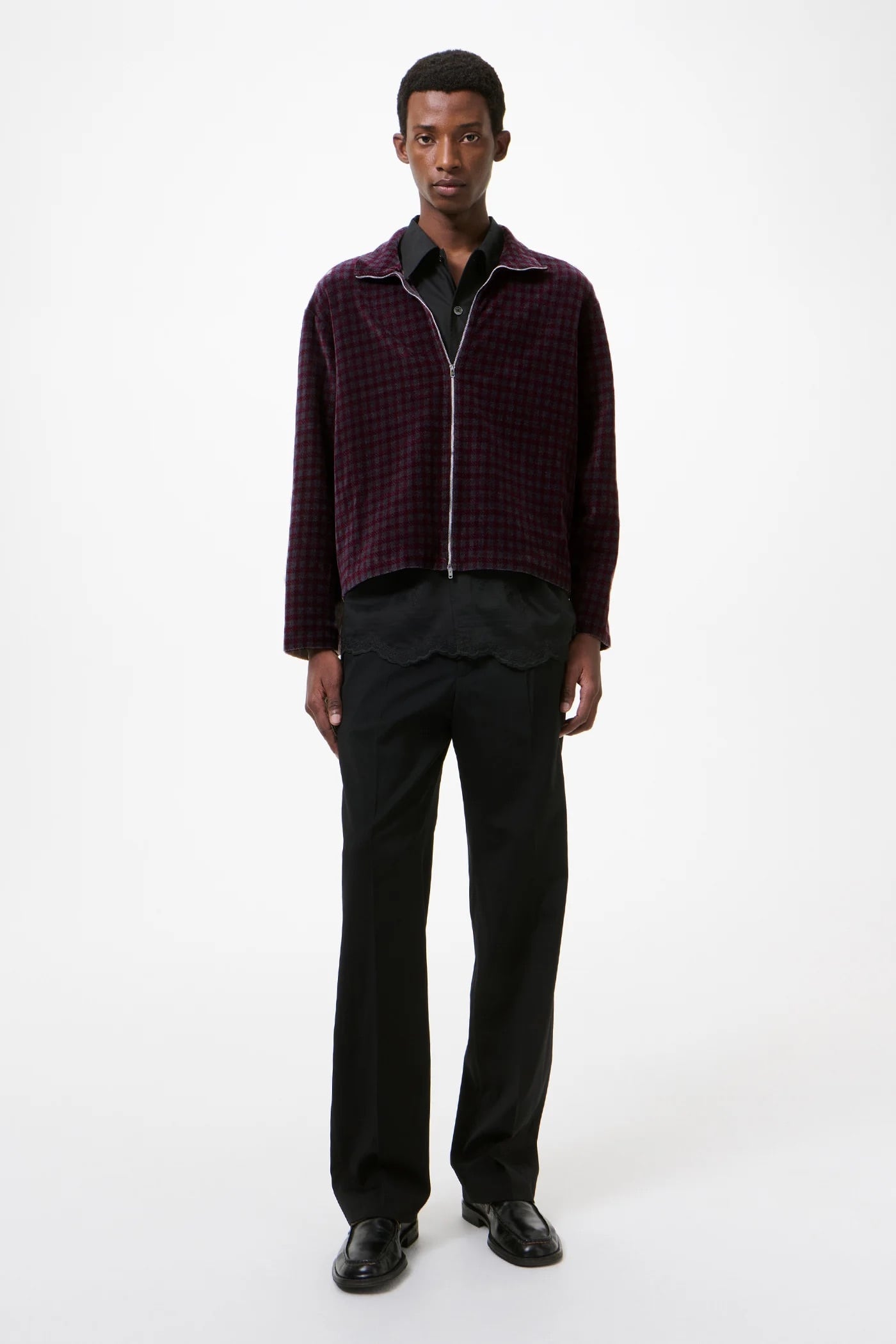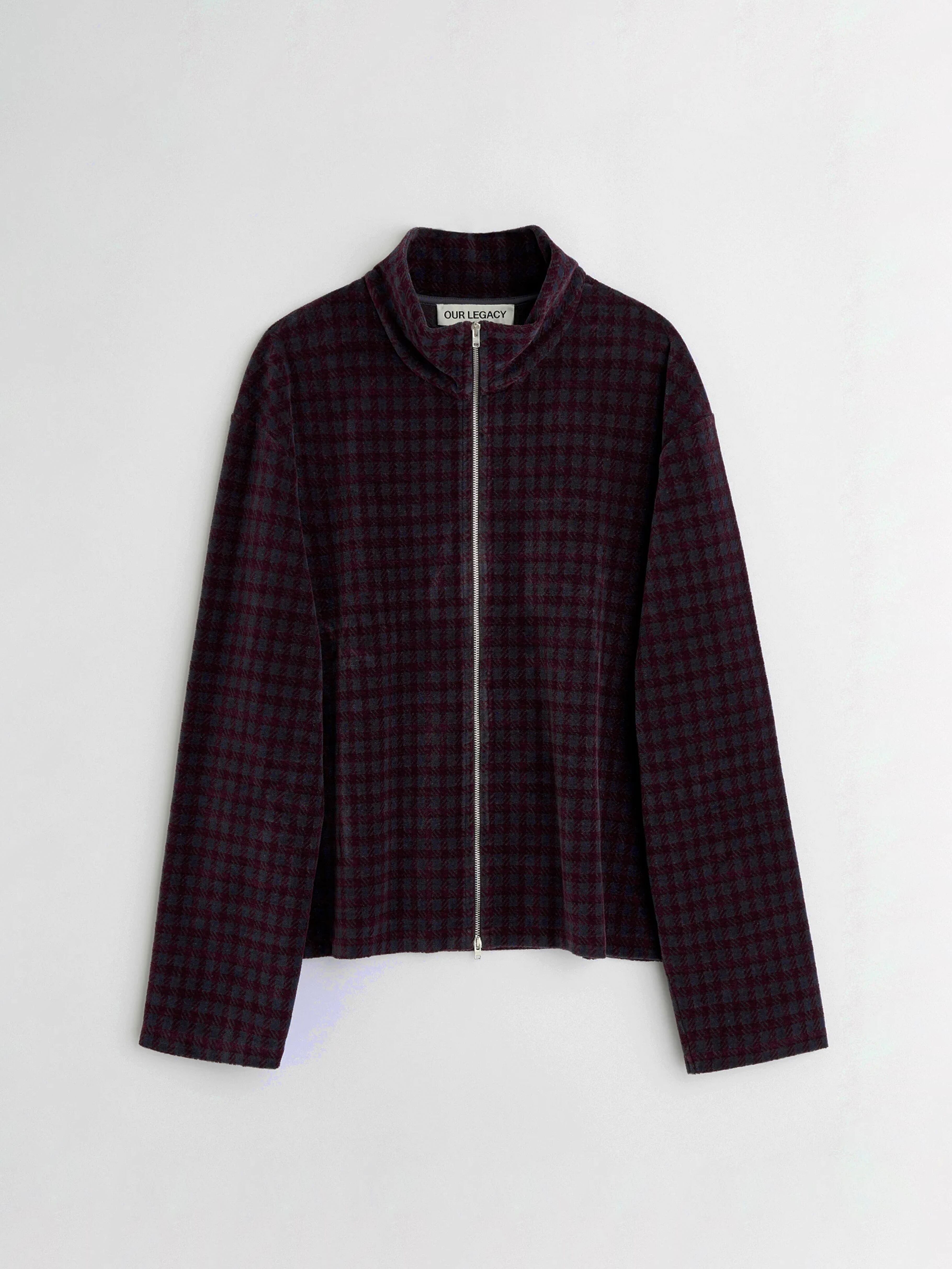 OUR LEGACY SHRUNKEN FULLZIP POLO Merlot Houndini Check Velour M2266SM