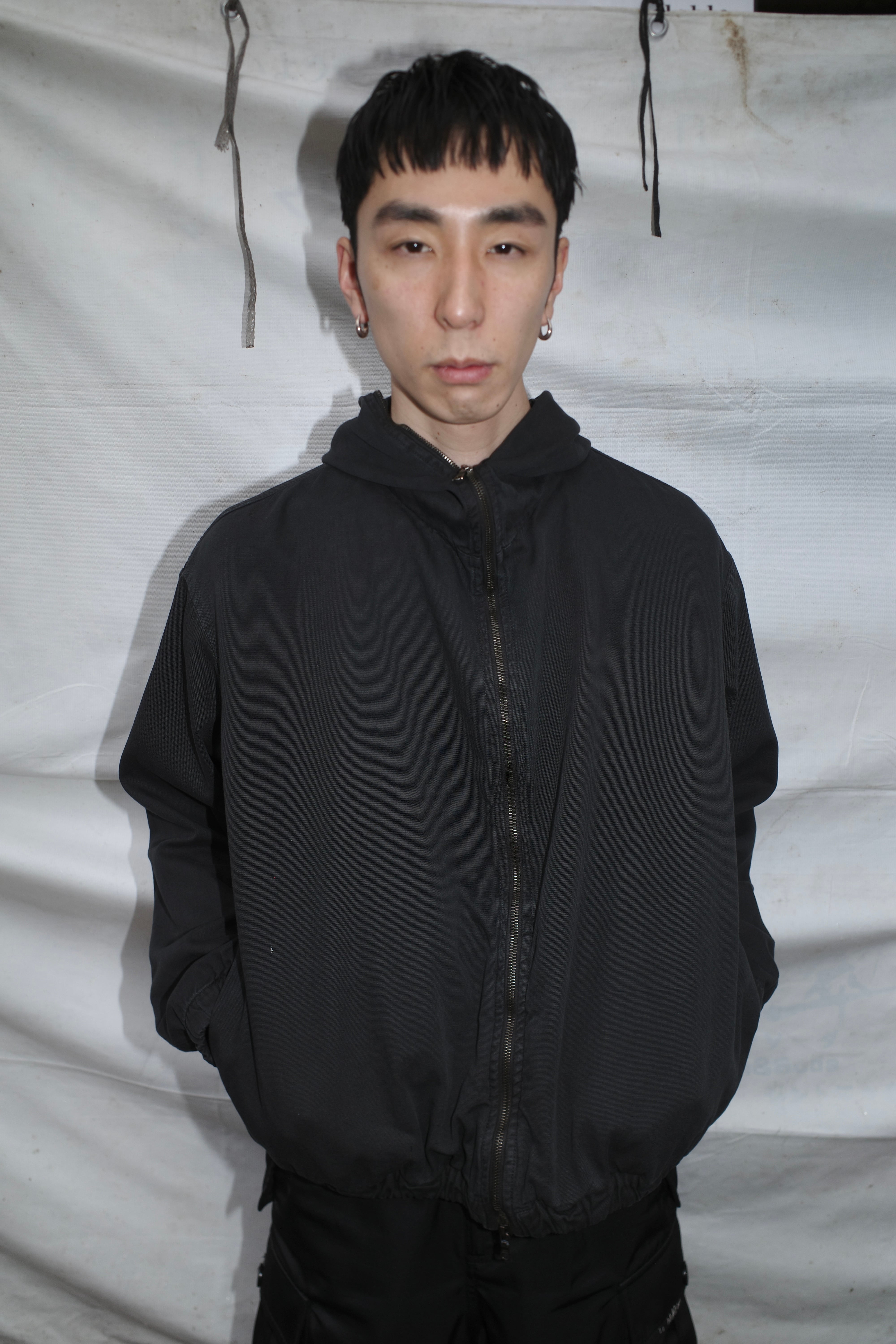 GABRIELA COLL GARMENTS THIN CANVAS HOODED ZIPPER JACKET BLACK S12-216