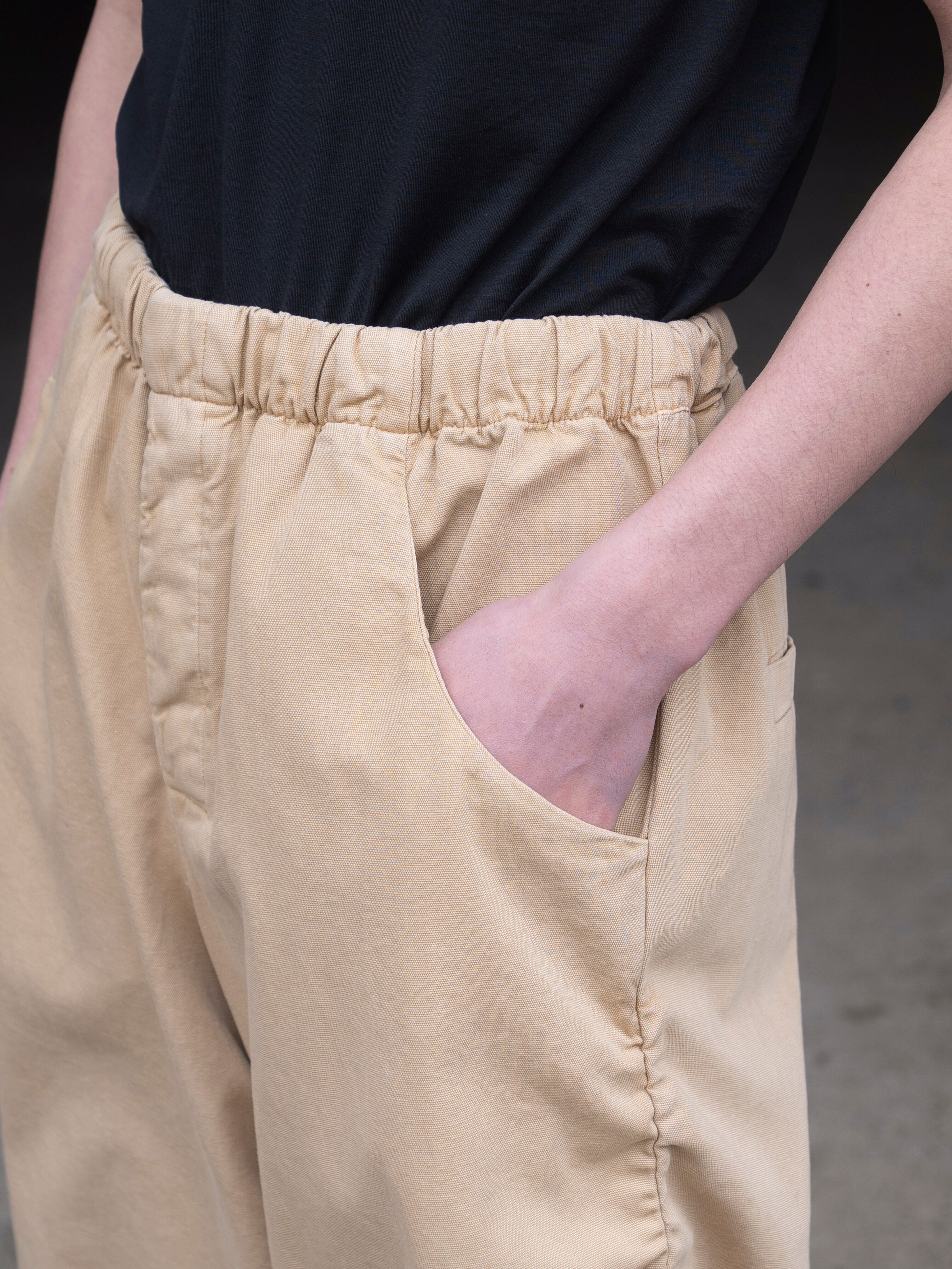 ※ウエストはゴム仕様、内側にはドローコードが付いており、調節可能となっております。