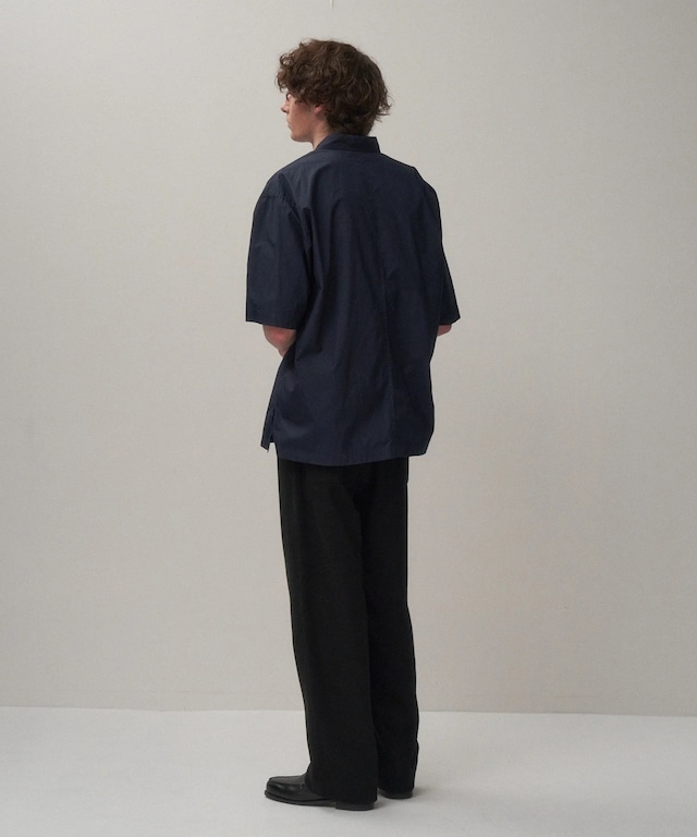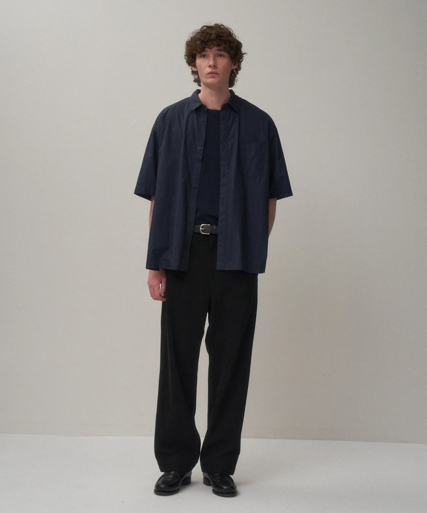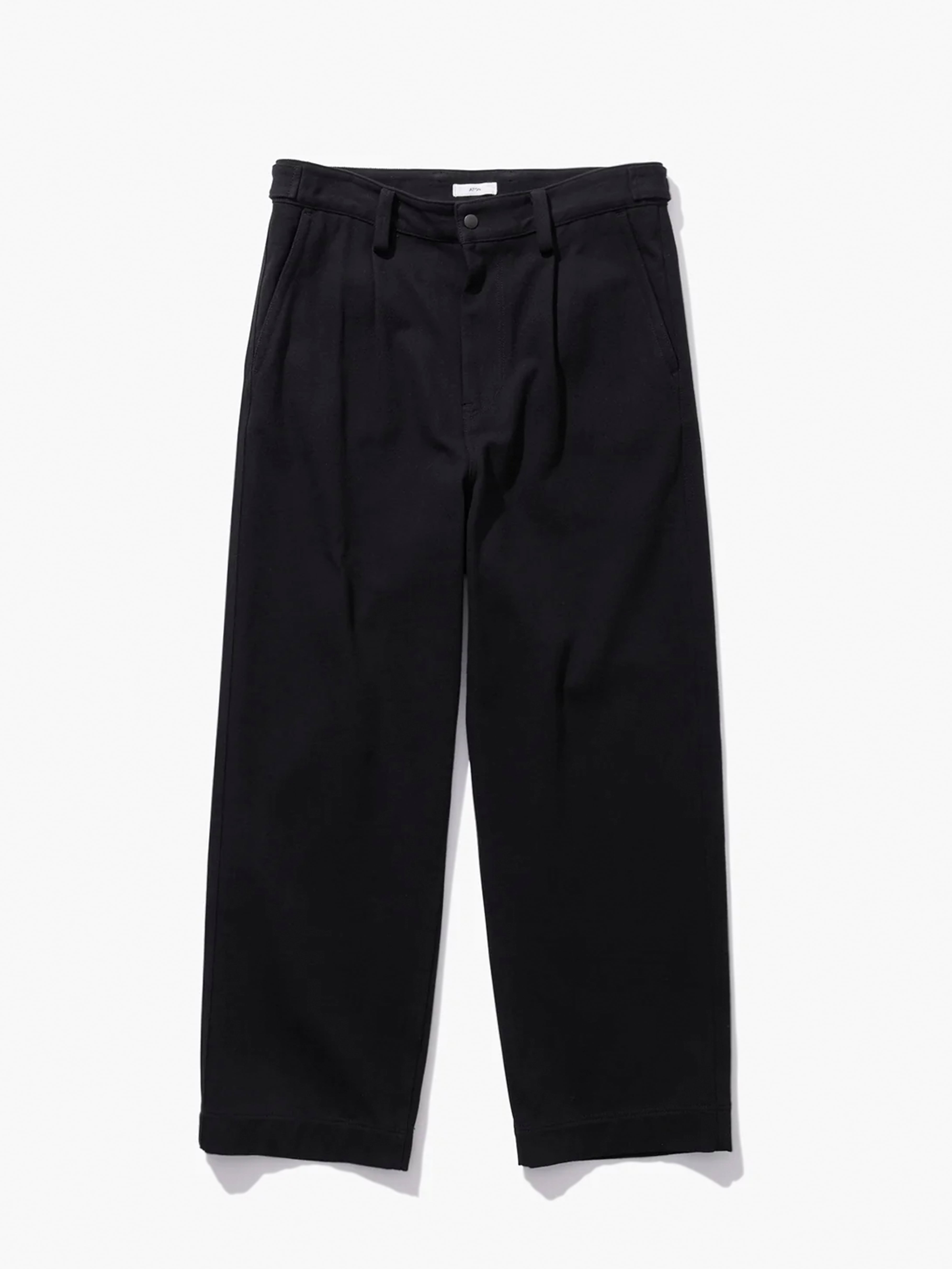 股上はすっきりとさせ、サイドに分量を持たせたタックワイドパンツ。ウエストの両サイドにはドットボタン付きのタブがついており、2段階のサイズ調節が可能です。スラックスのような上品な表情とミリタリーの無骨さを併せ持った、通年着用可能なアイテムです。