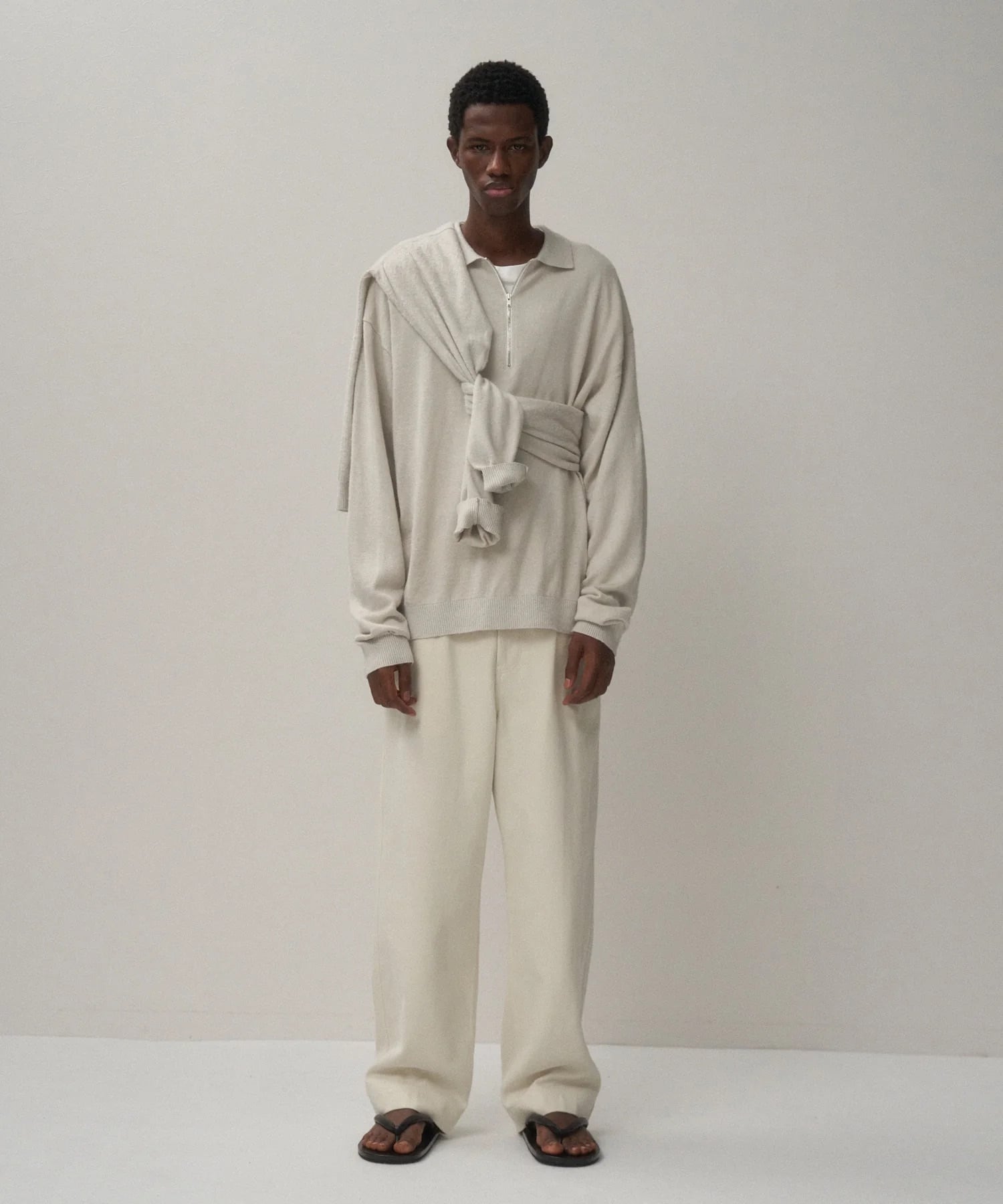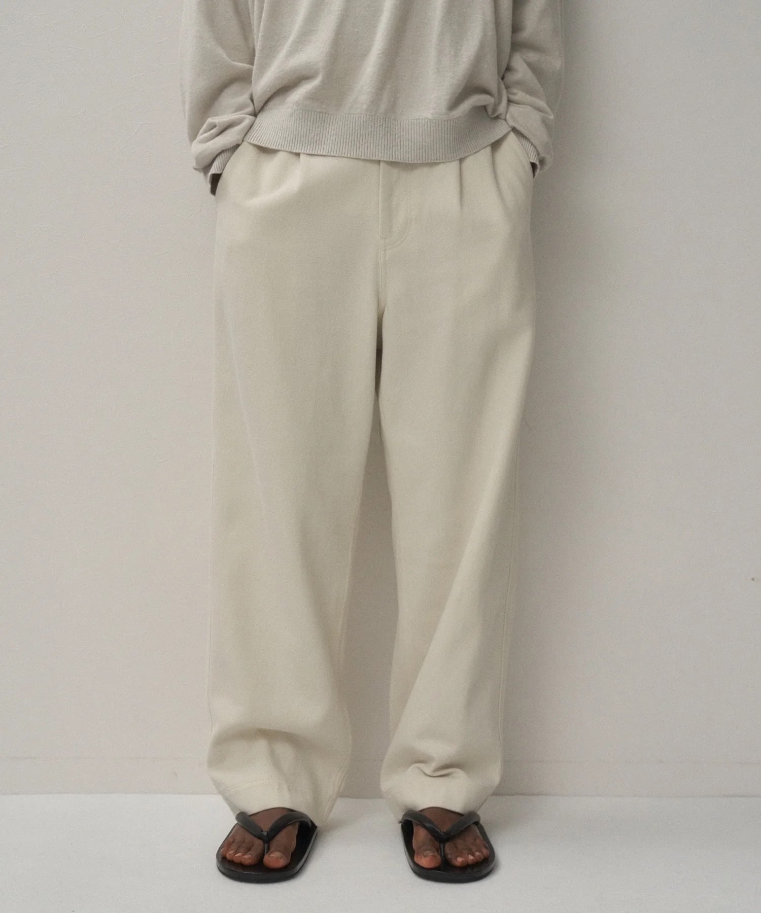 ATON WASHED TWIST COTTON TUCK WIDE PANTS IVORY PRAGLM0104