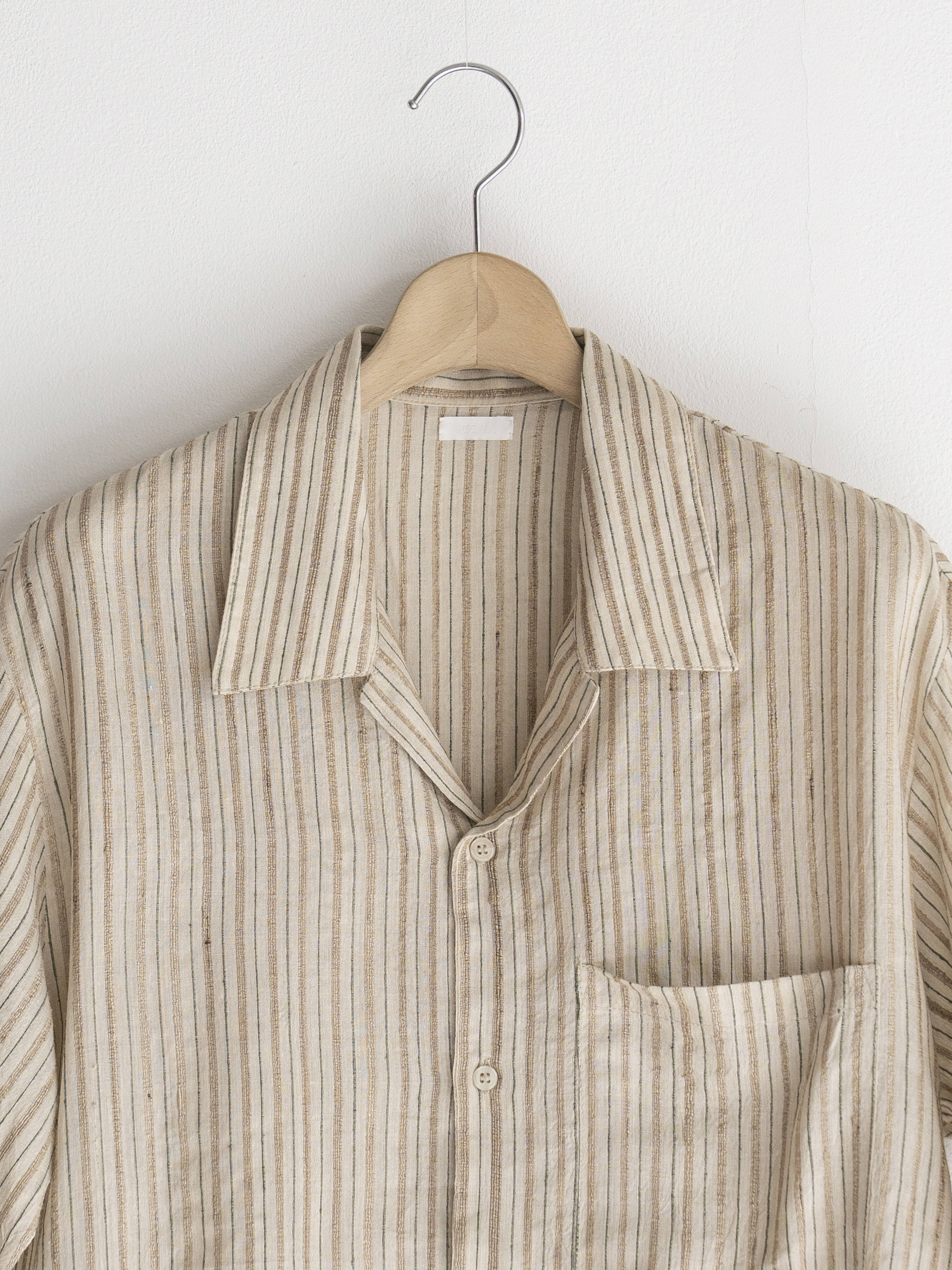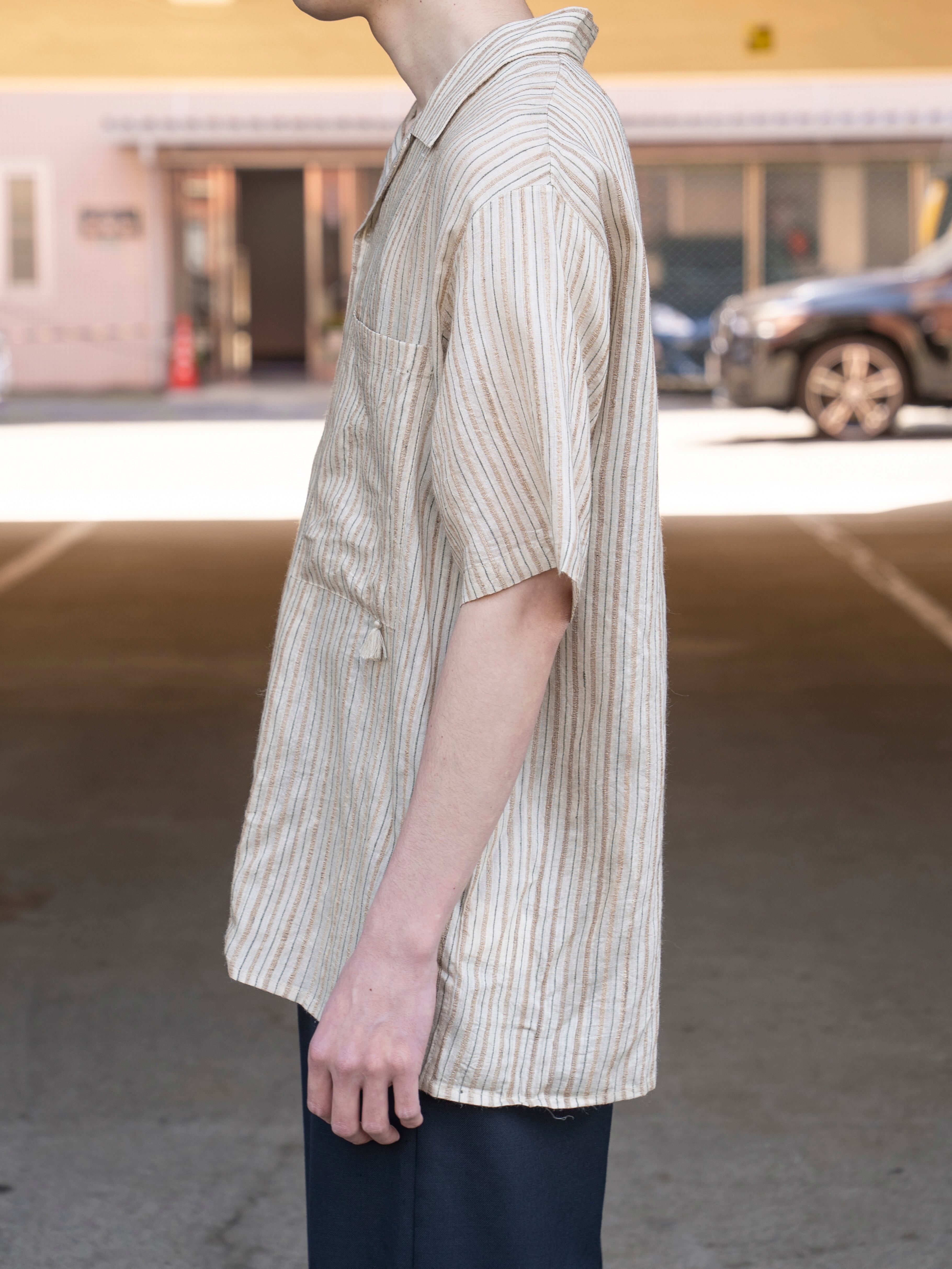 シルエットは身幅にたっぷりとゆとりを持たせたボックスシルエット。NATURAL STRIPEは、ナチュラルな生成りベースに細いストライプが入った、清涼感と温かみのある表情が特徴です。
