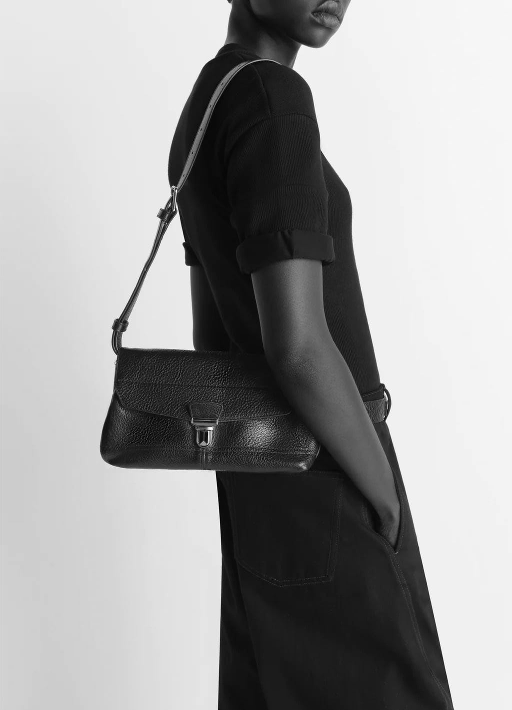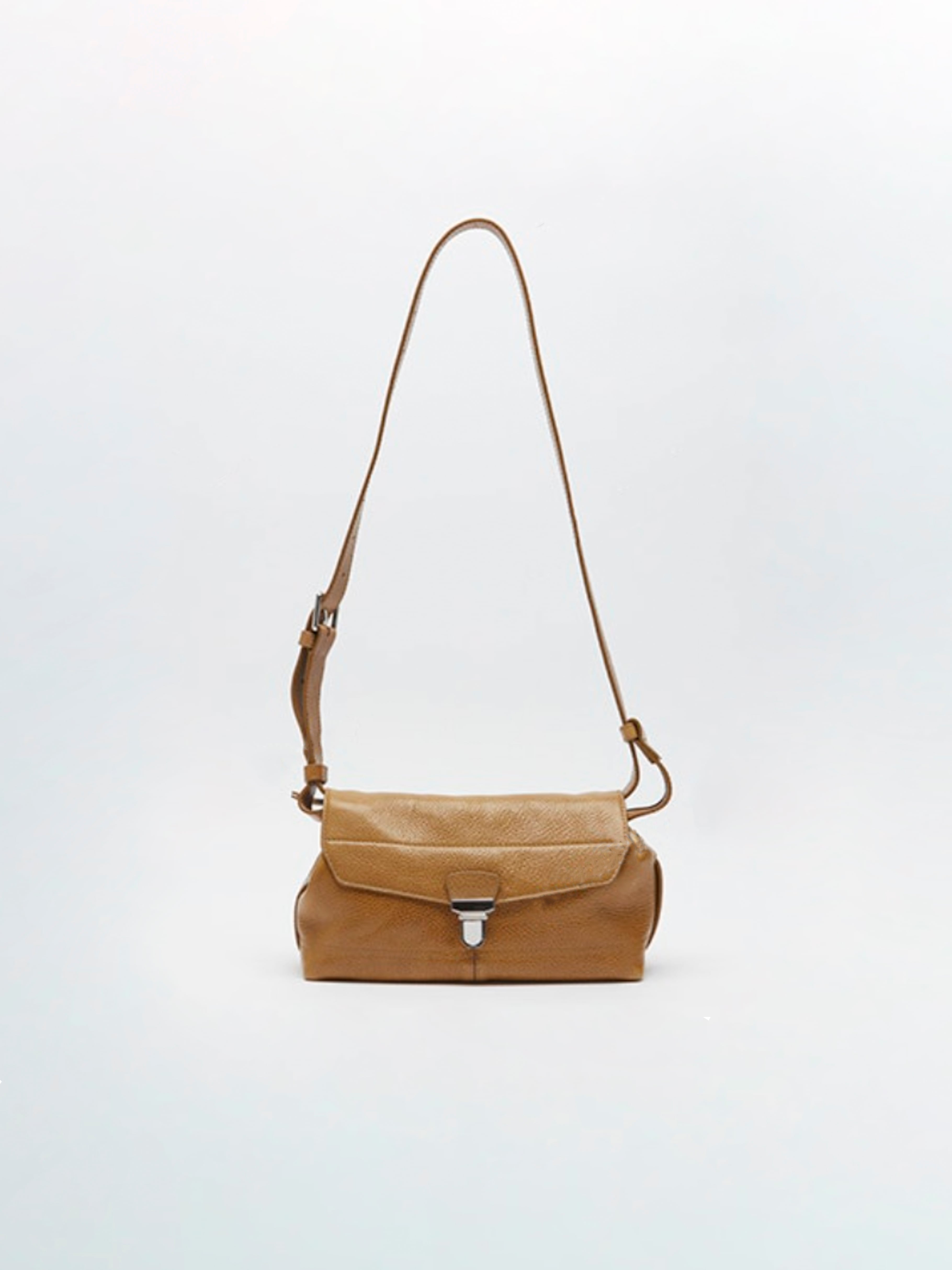 ルメールの実用主義精神にインスパイアされたGearラインは、ヴィンテージのツールバッグのディテール、特にメタルクリップ留めのシグネチャーであるフラップ開閉を採用しています。